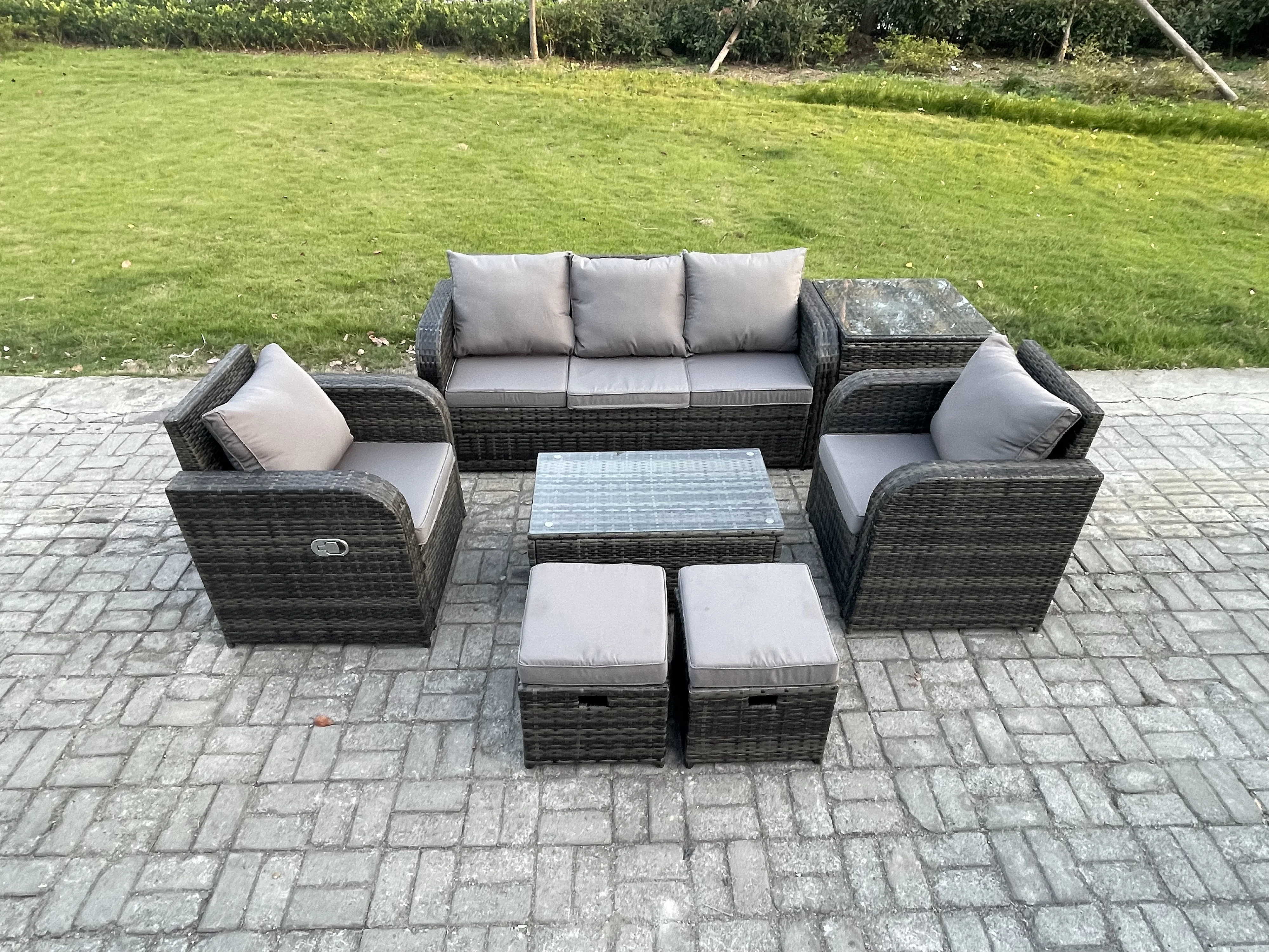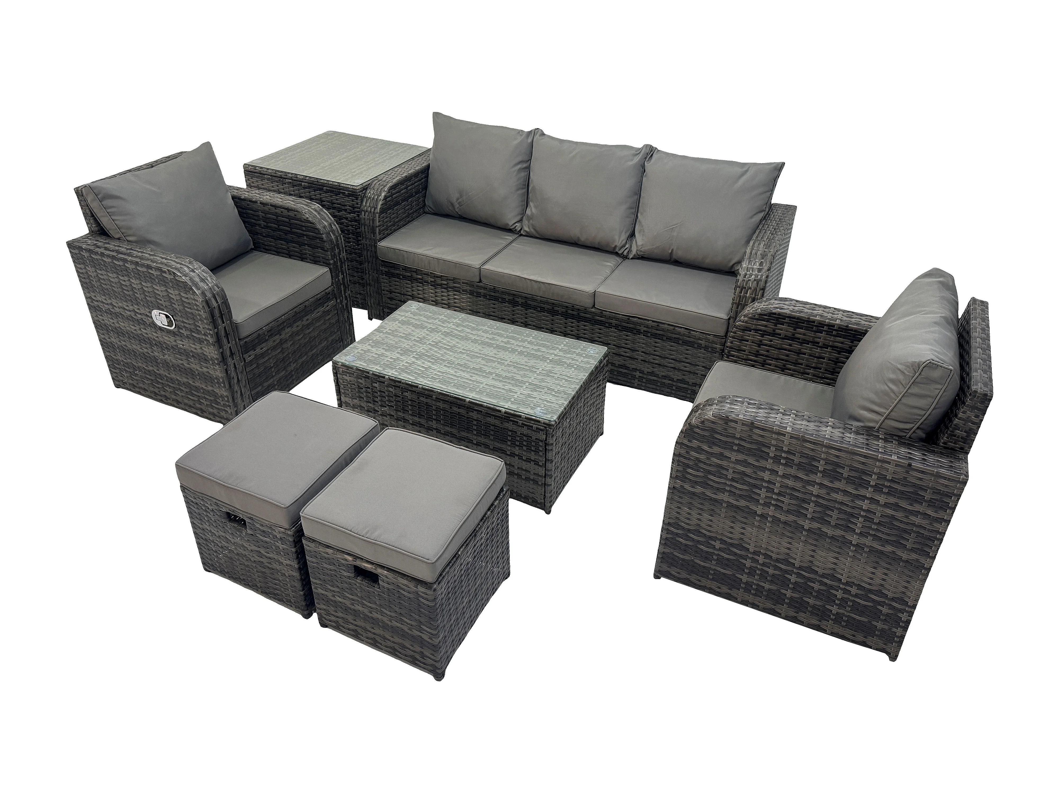 Polyrattan Gartenmöbelset Garten Lounge Set mit Liegestühle Rechteckiger Couchtisch Beistelltisch 2 kleine Fußhockern Dunkelgrau Gemischt