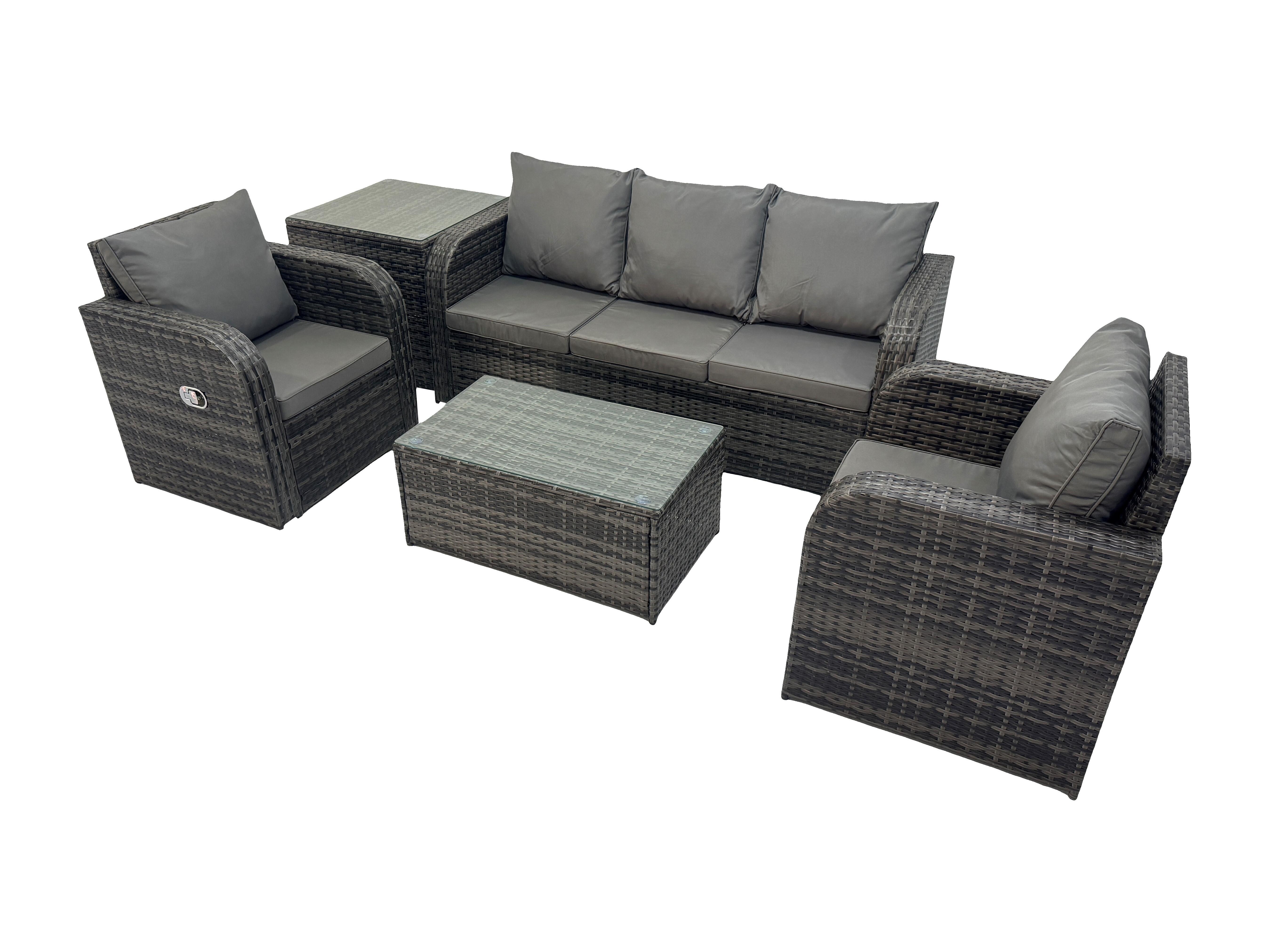 Polyrattan Gartenmöbelset Garten Lounge Set mit Liegestühle Rechteckiger Couchtisch Beistelltisch Dunkelgrau Gemischt