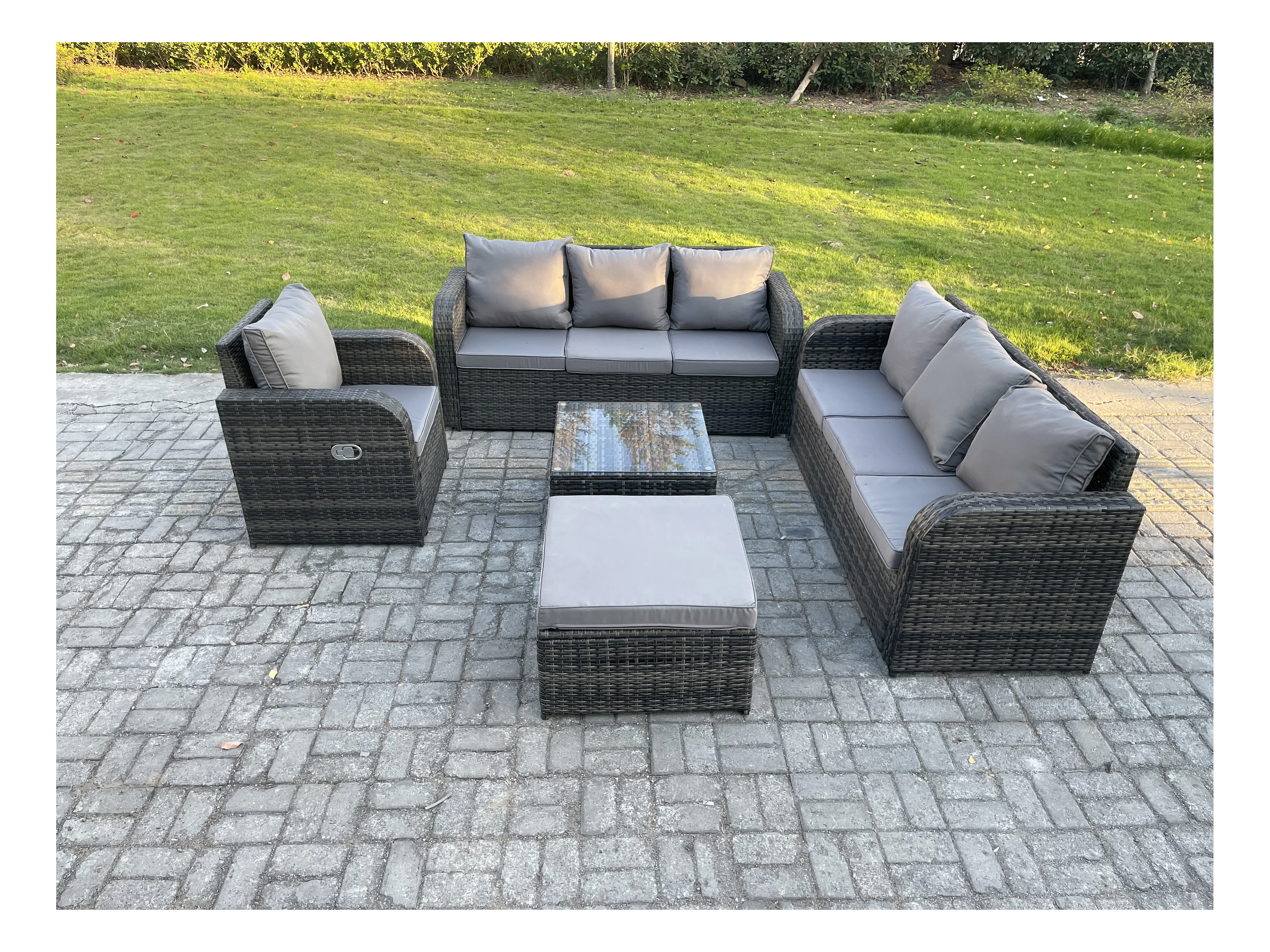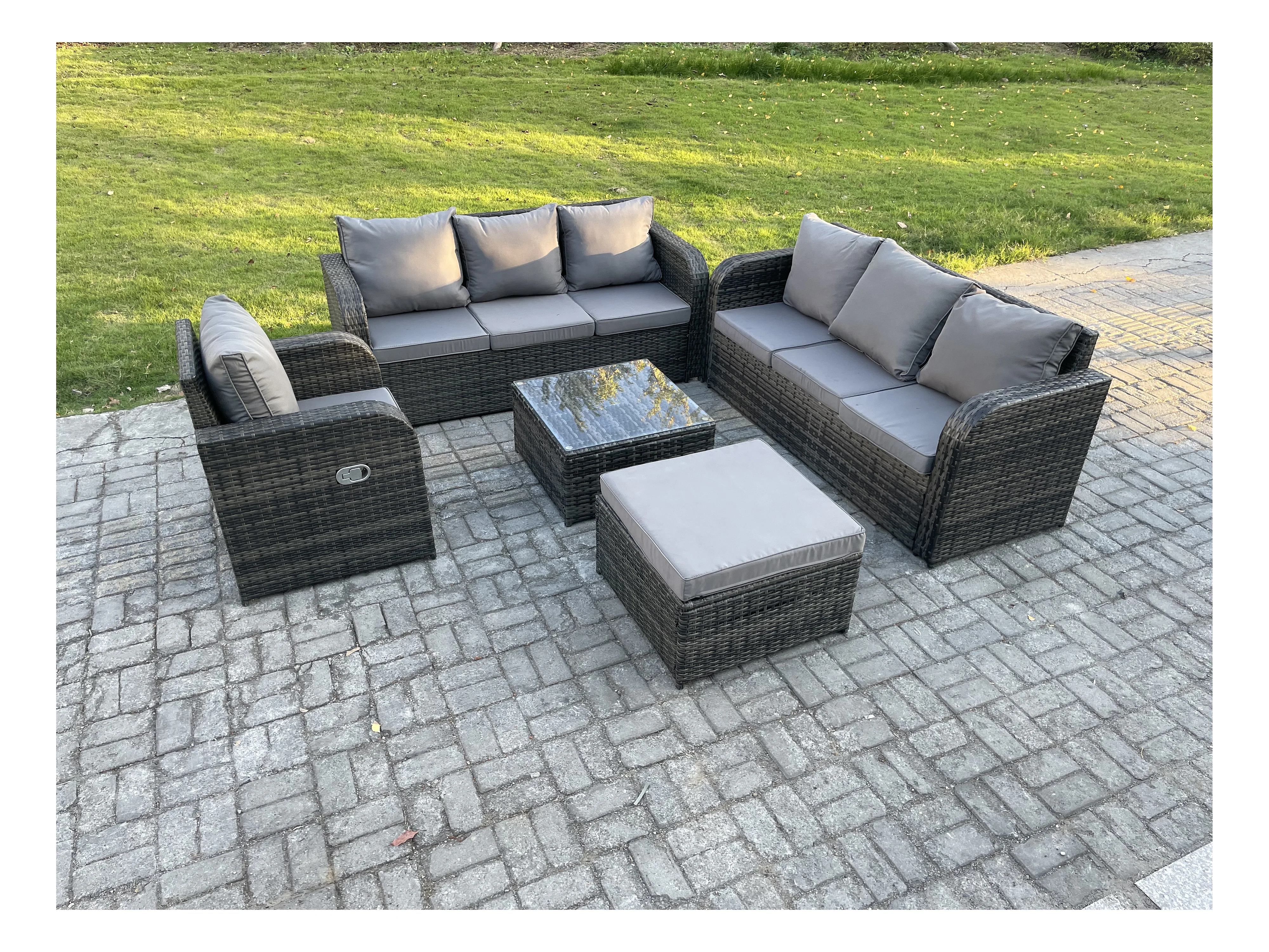 Polyrattan Gartenmöbelset Garten Sofa Couchtisch Set mit Liegestühle 2 Großer Hockern Dunkelgrau Gemischt