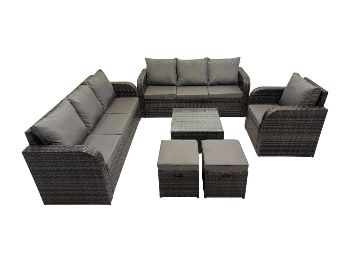 Polyrattan Gartenmöbelset Garten Sofa Couchtisch Set mit Liegestühle 2 kleine Fußhockern Dunkelgrau Gemischt