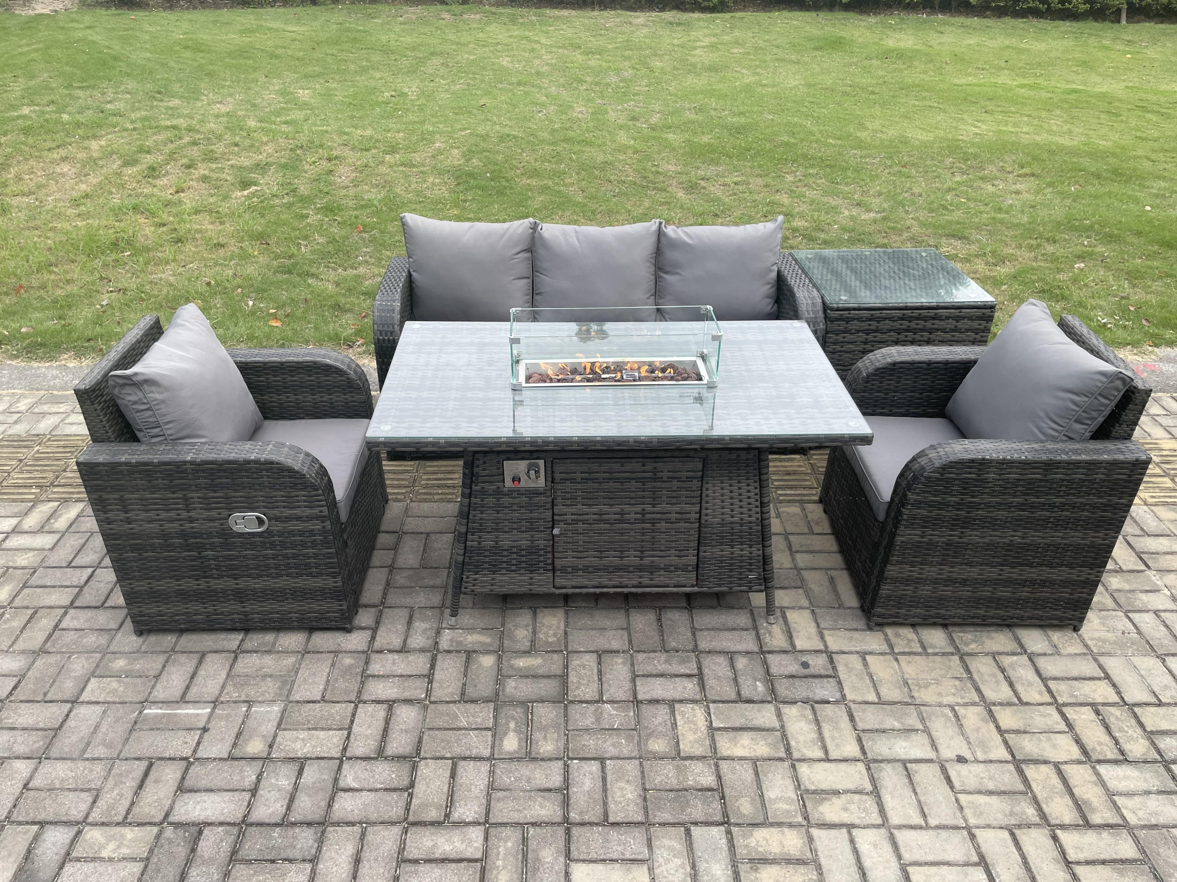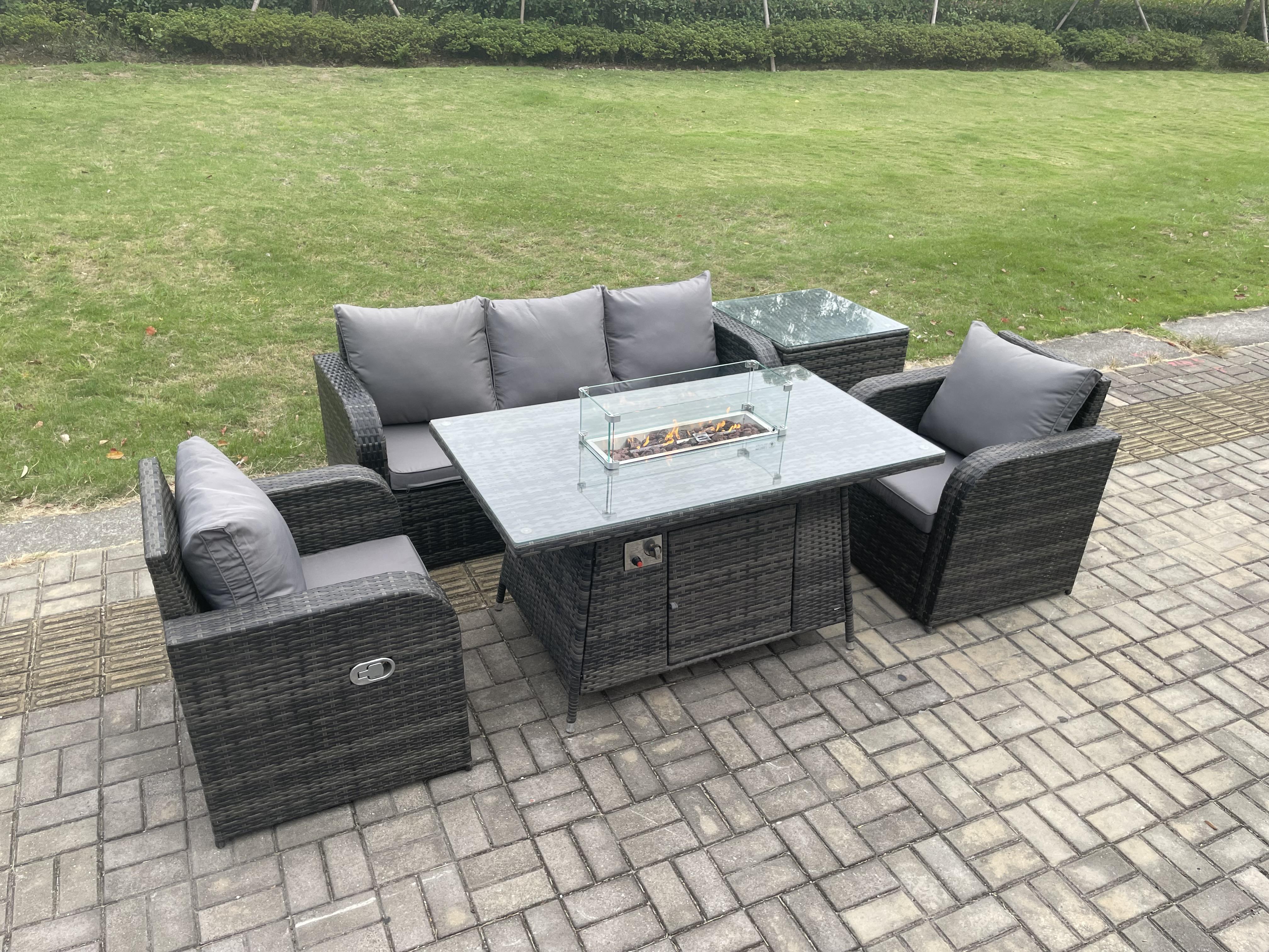Polyrattan Gartenmöbelset Gasfeuerstelle Esstisch mit Sofa Beistelltisch