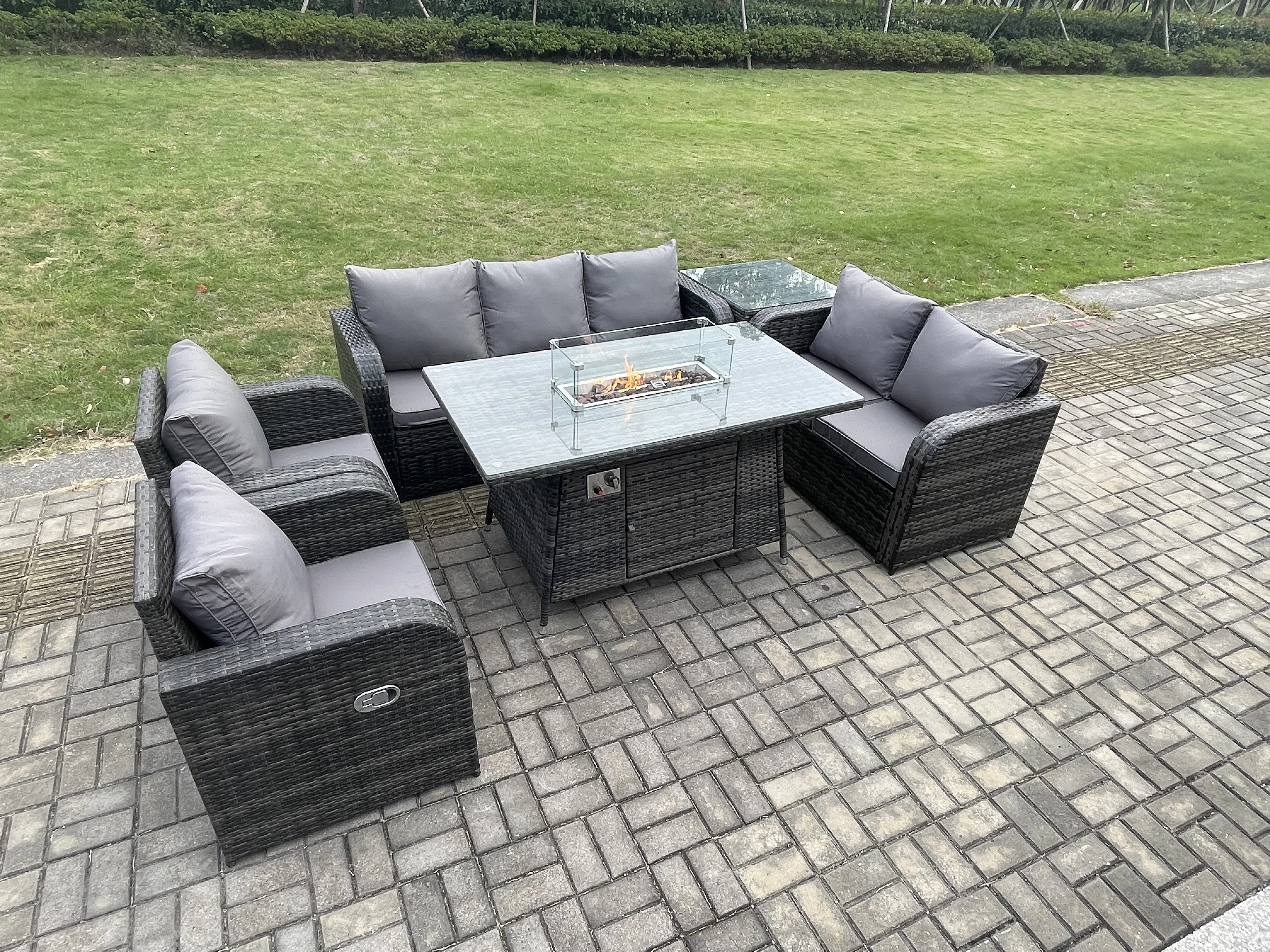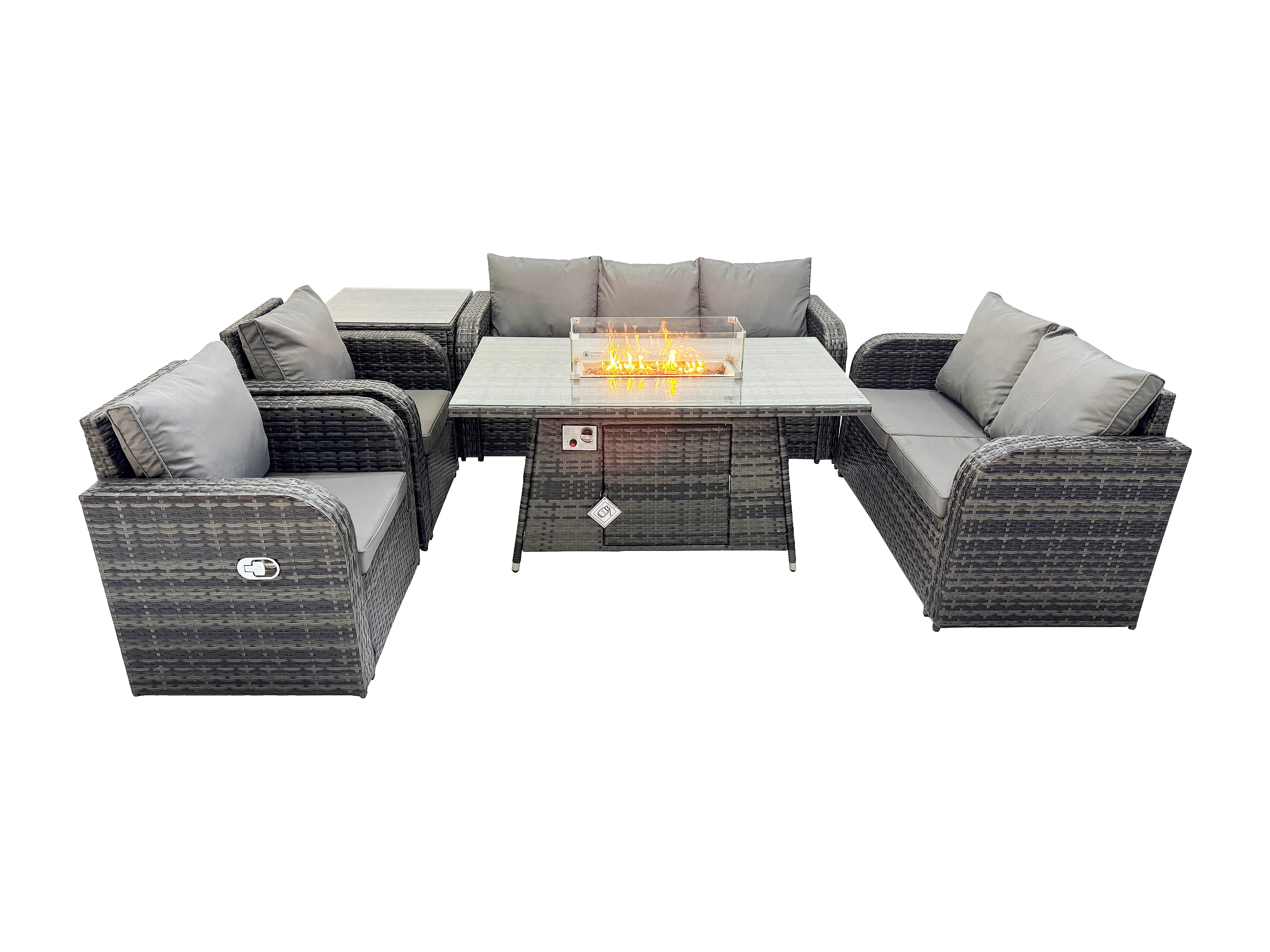 Polyrattan Gartenmöbelset Gasfeuerstelle Esstisch und Sofa Sessel set mit Beistelltisch 7-Sitzer