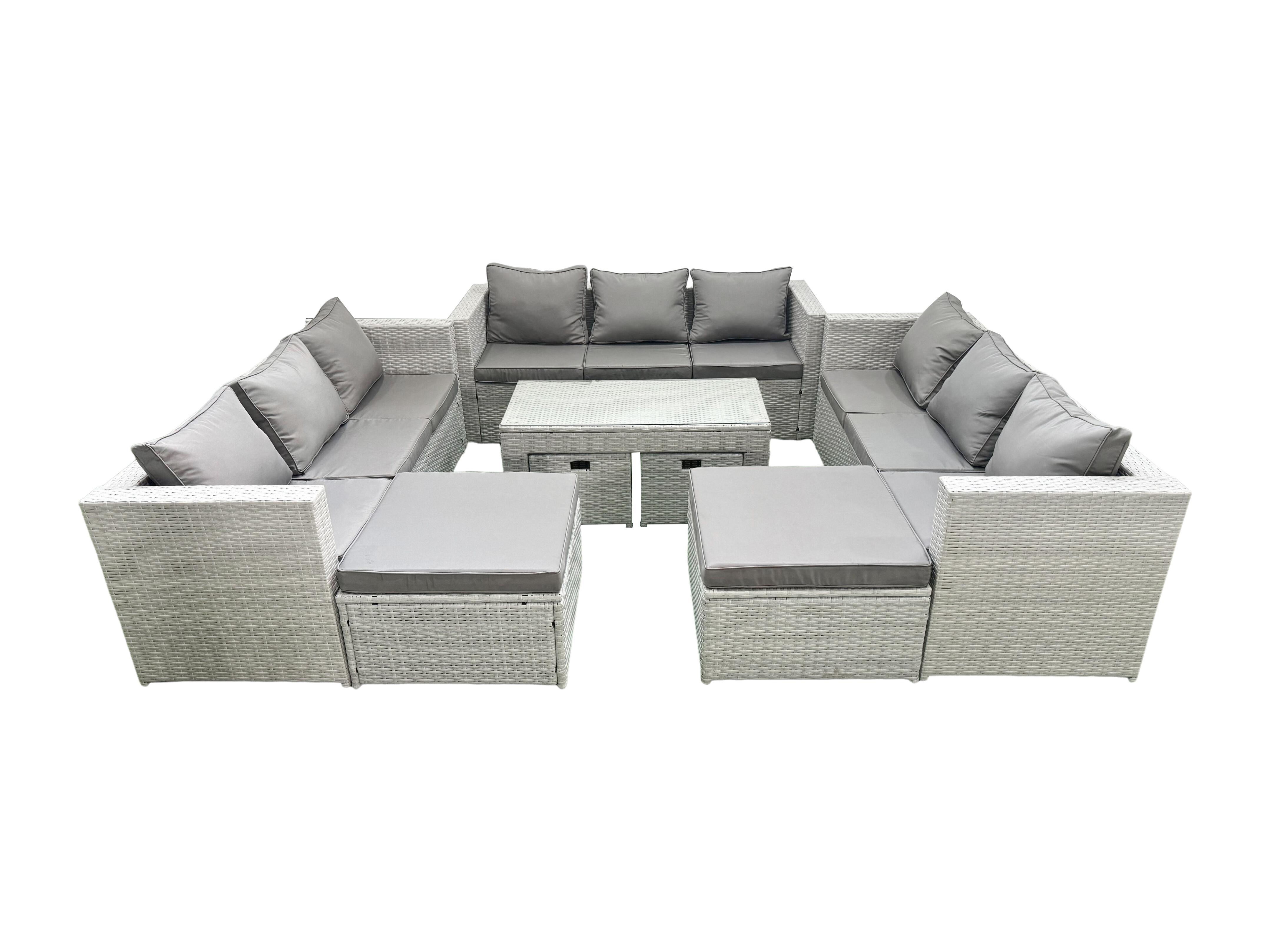 Polyrattan Gartenmöbelset mit Graue Kissen 10-Sitzer mit Couchtisch
