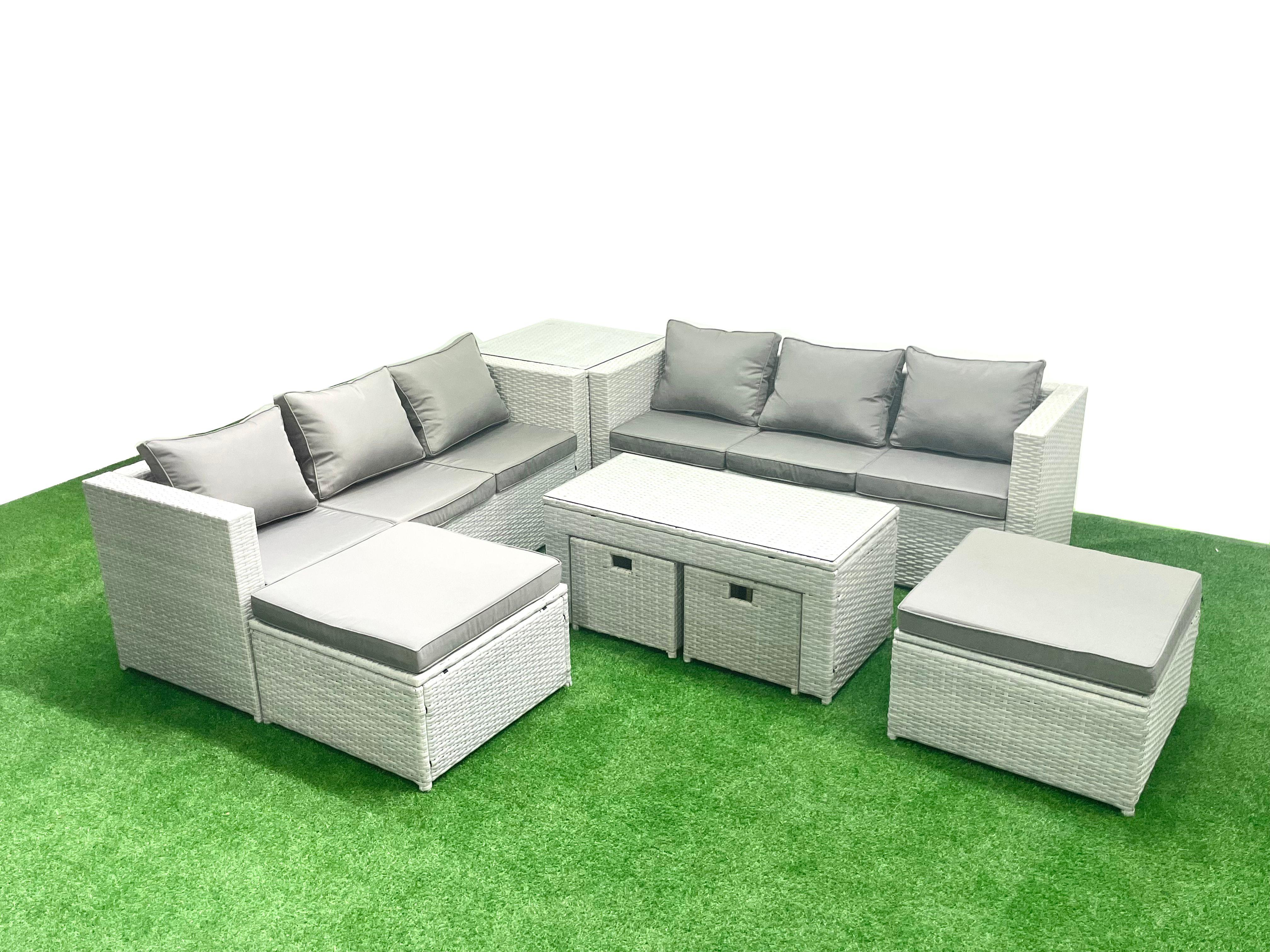 Polyrattan Gartenmöbelset mit Graue Kissen 10-Sitzer mit Couchtisch und Beistelltisch