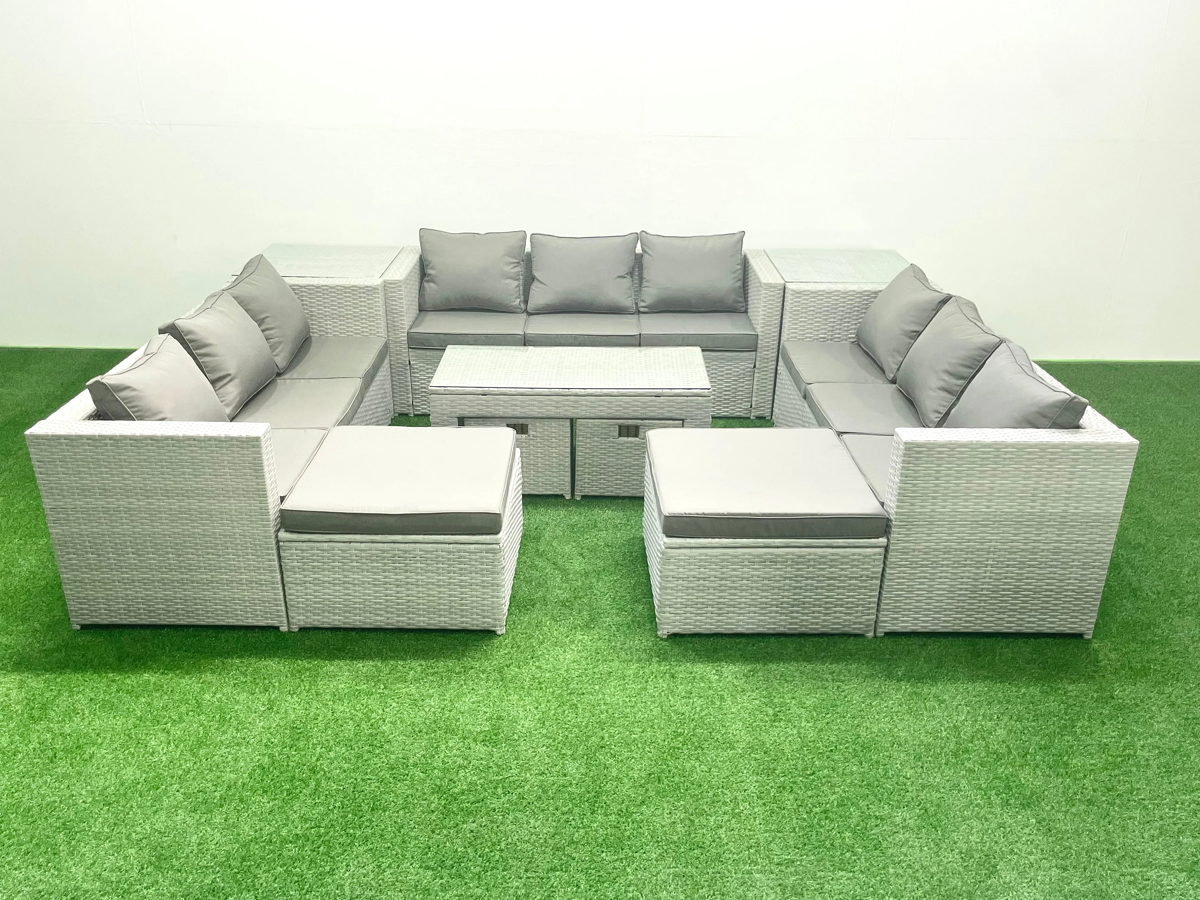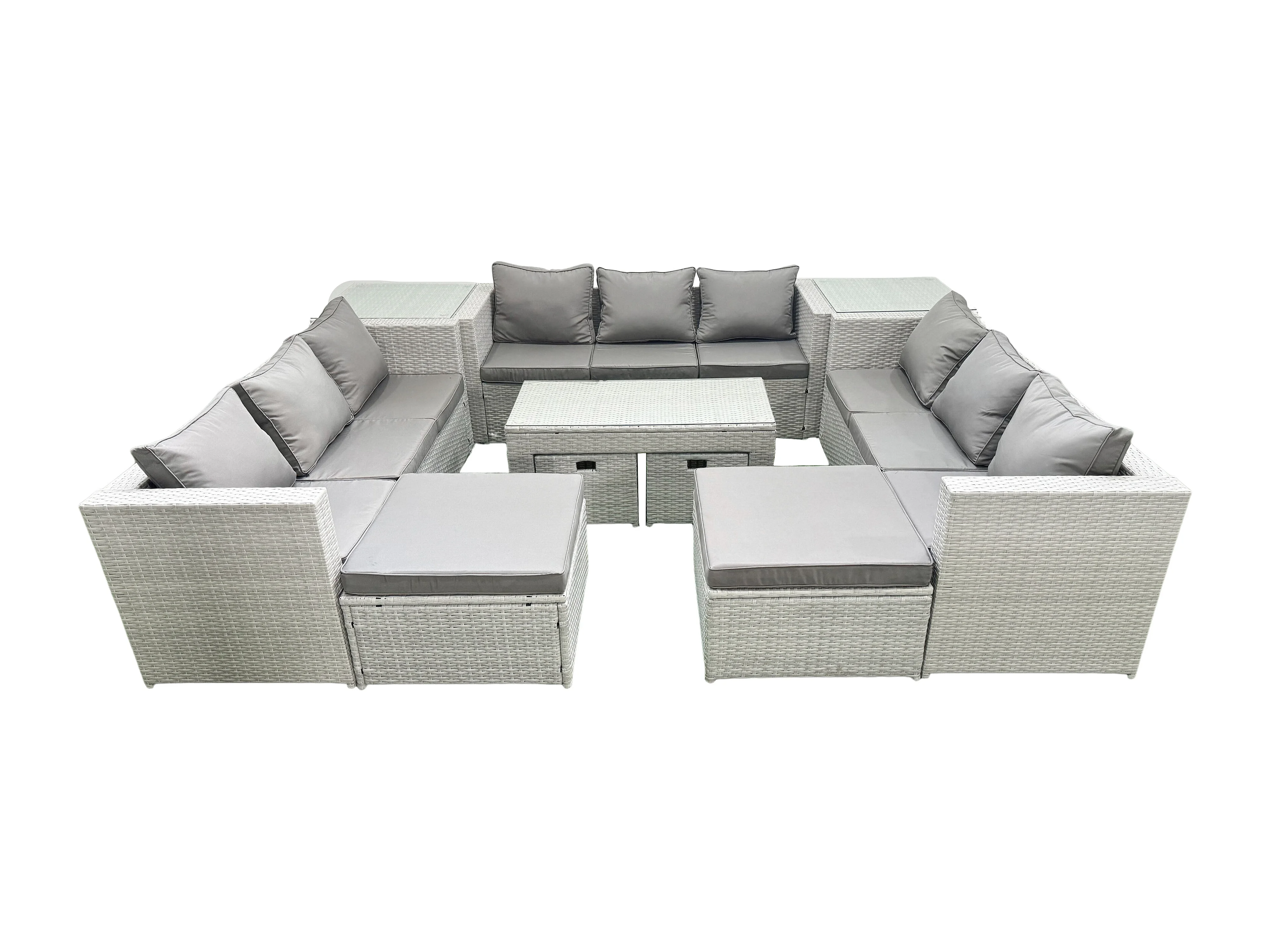 Polyrattan Gartenmöbelset mit Graue Kissen 14-Sitzer mit Couchtisch und 2 Beistelltischen
