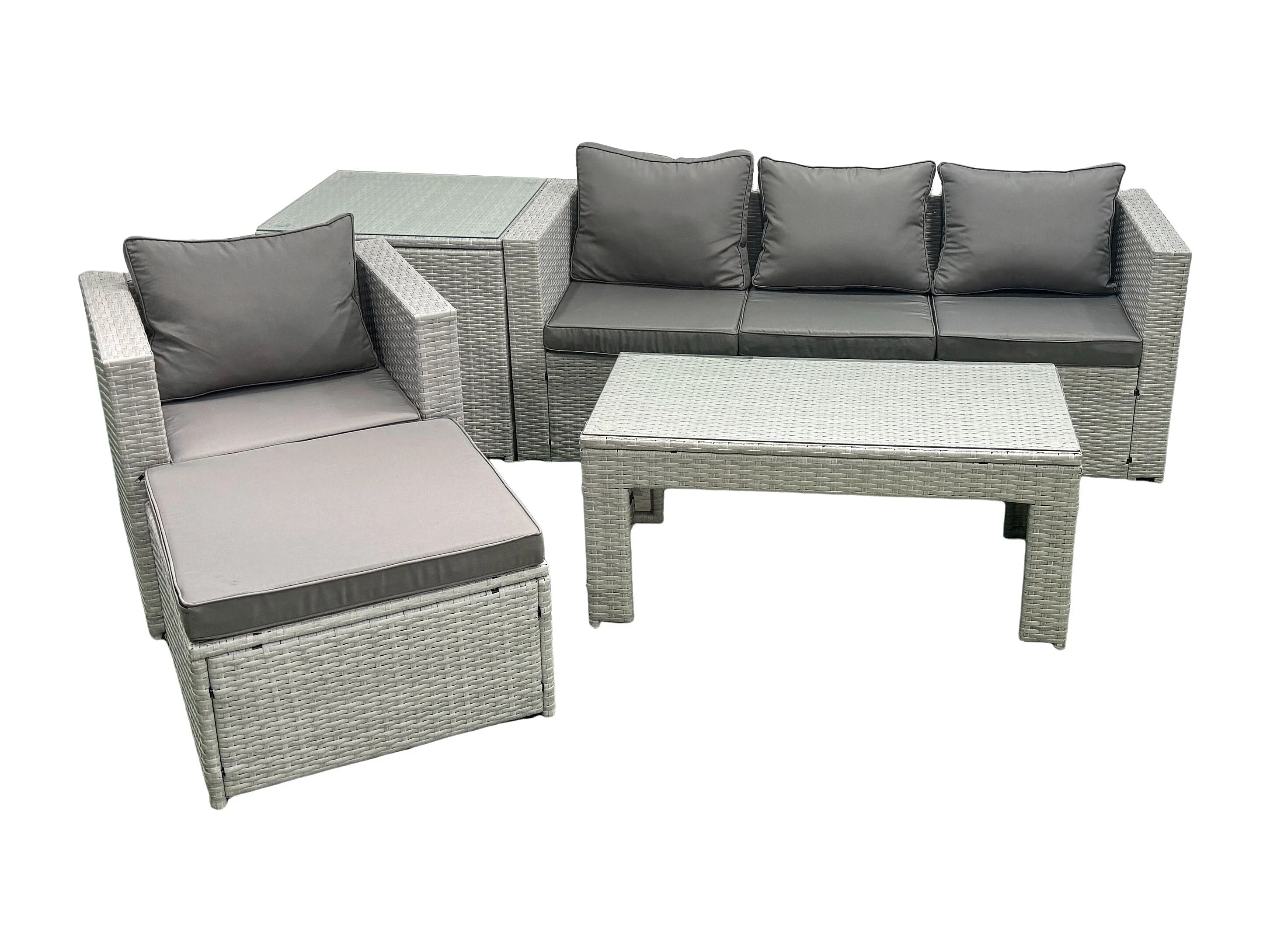 Polyrattan Gartenmöbelset mit Graue Kissen 5-Sitzer mit Beistelltisch und Couchtisch