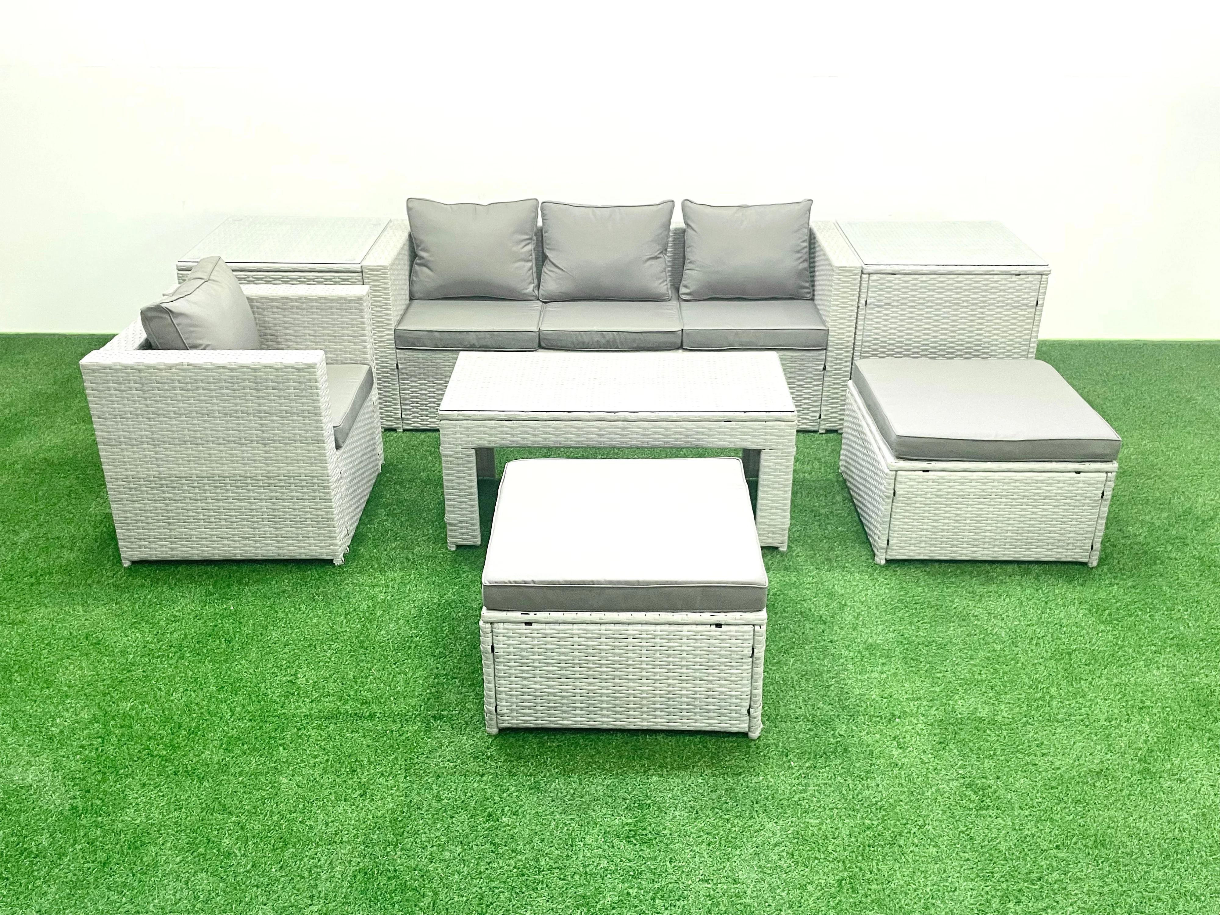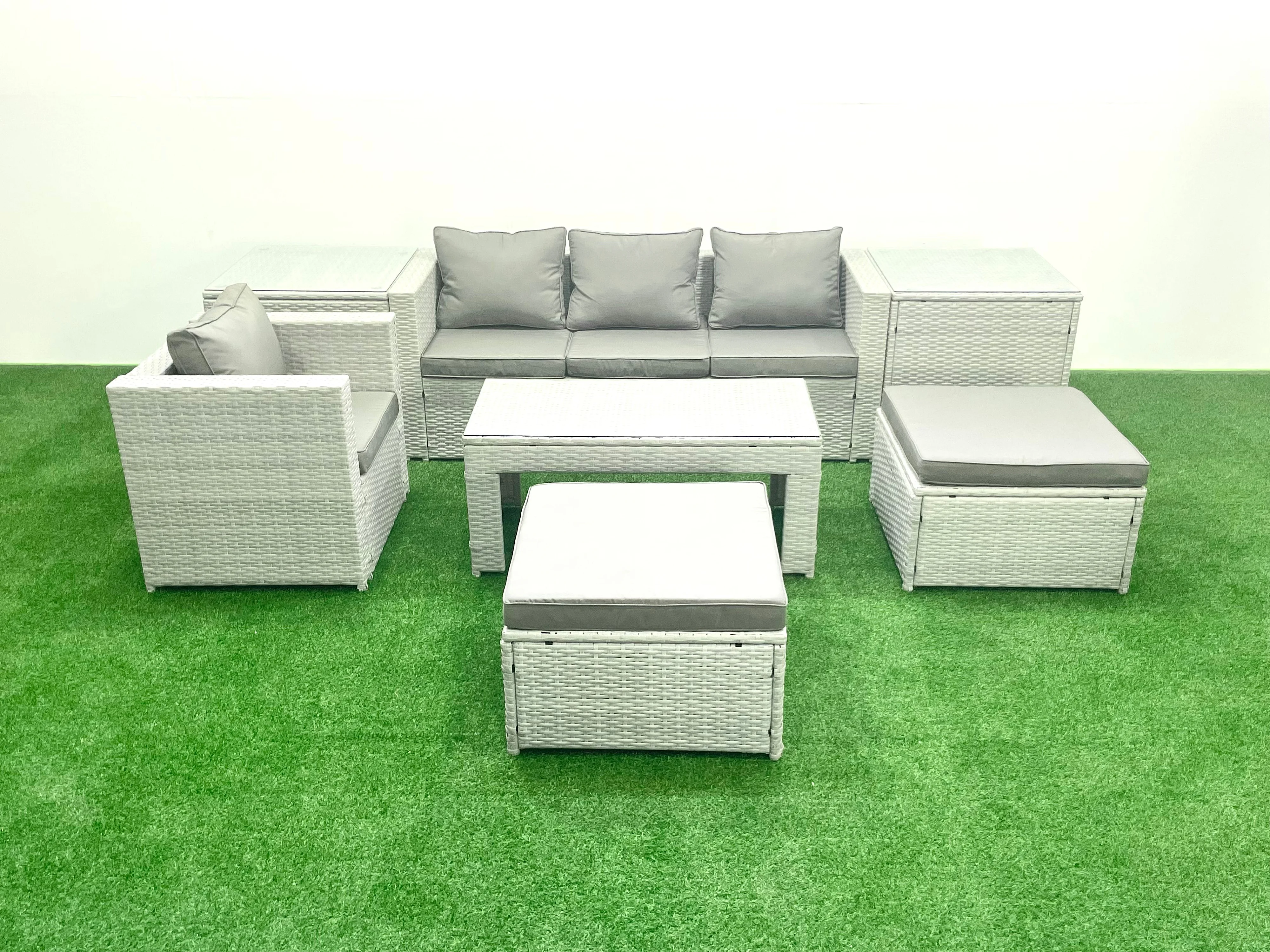Polyrattan Gartenmöbelset mit Graue Kissen 6-Sitzer mit 2 hohen Hockern und Couchtisch,2 Beistelltischen