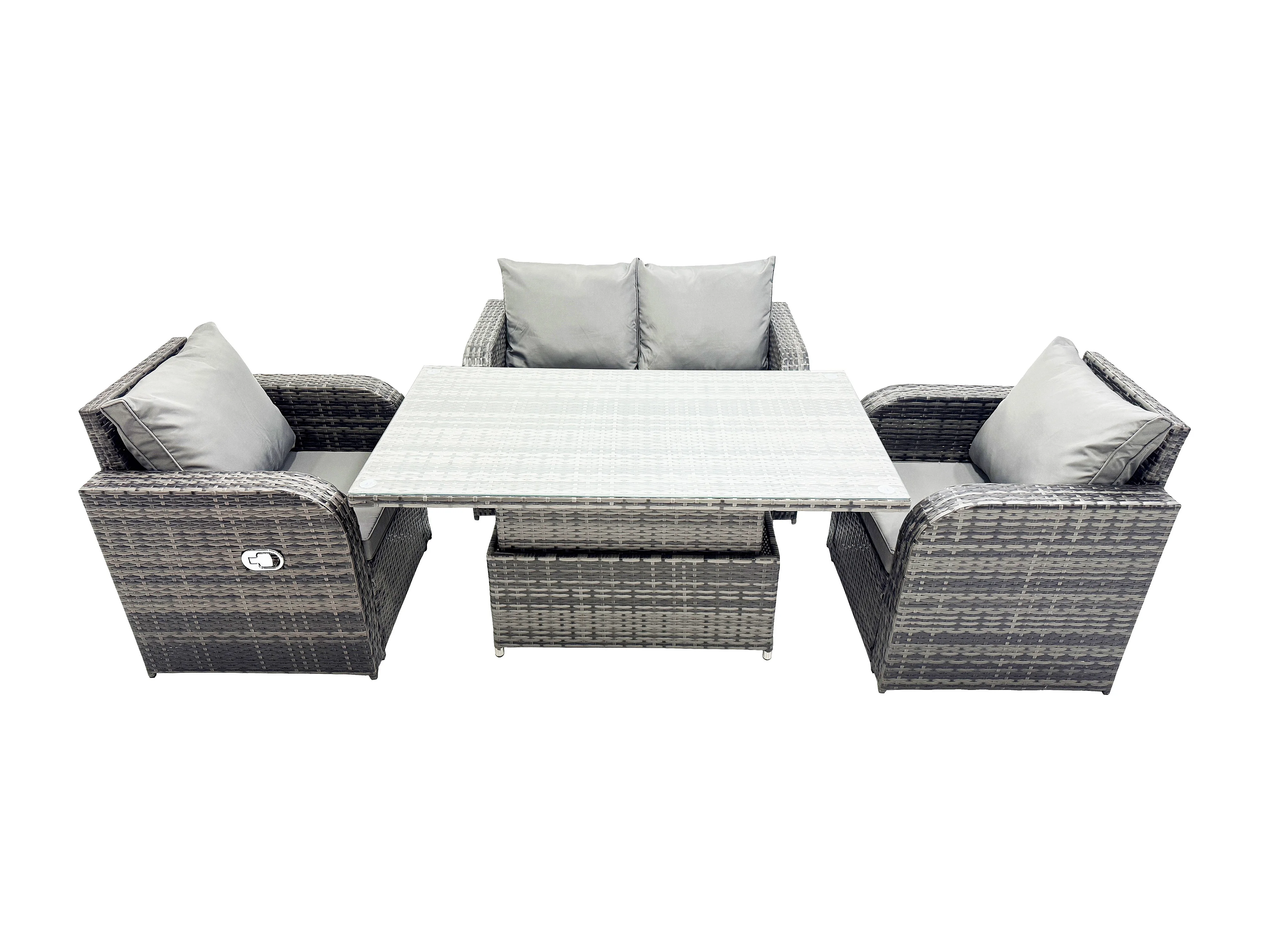 Polyrattan Sitzgruppe Essgruppe Set höhenverstellbarer Tisch Love Sofa mit Liegestühle