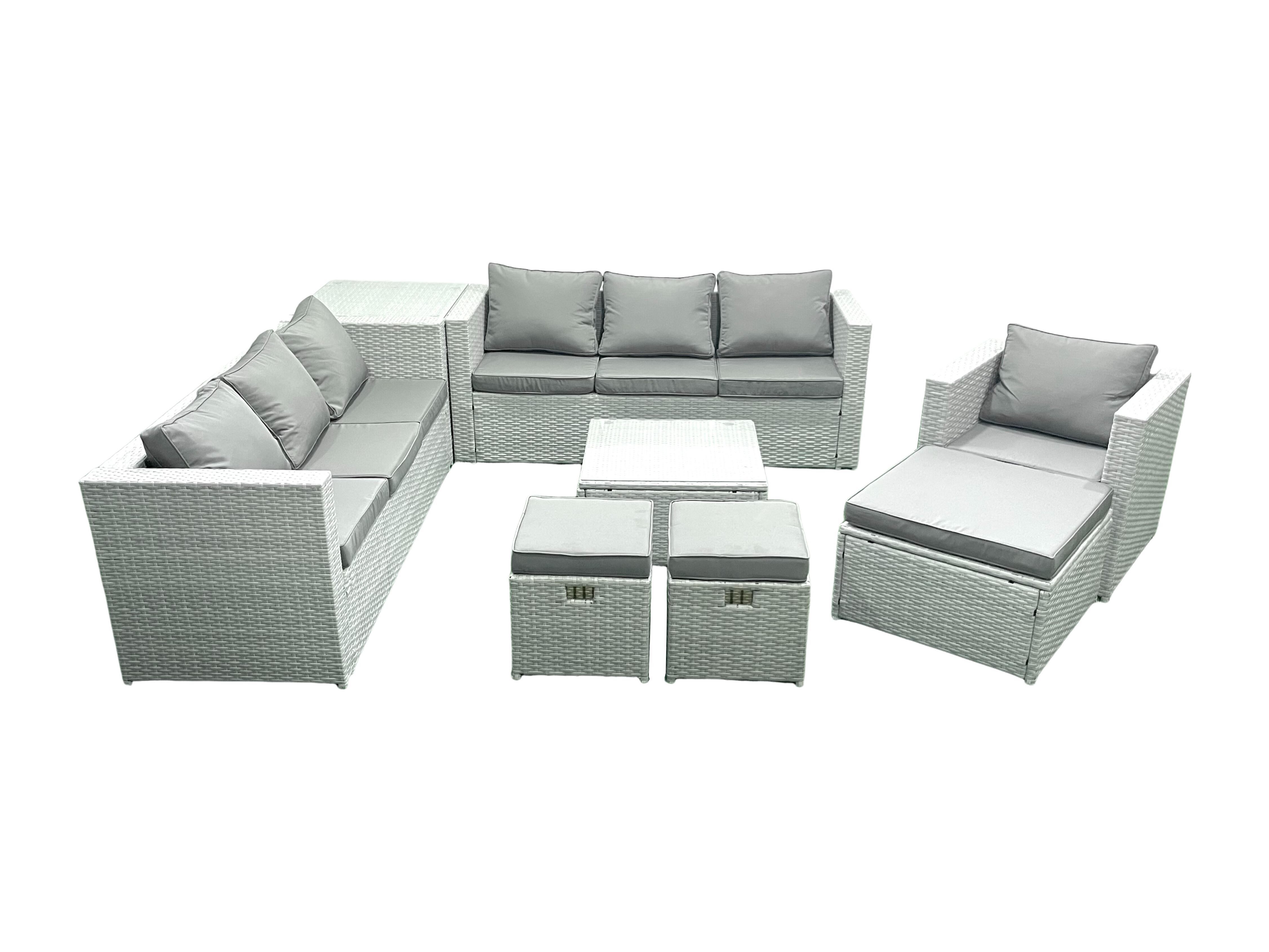 Polyrattan Sofa Gartenmöbel Set mit Sessel Quadratischer Couchtisch 3 Hockern Beistelltisch Hellgrau gemischt