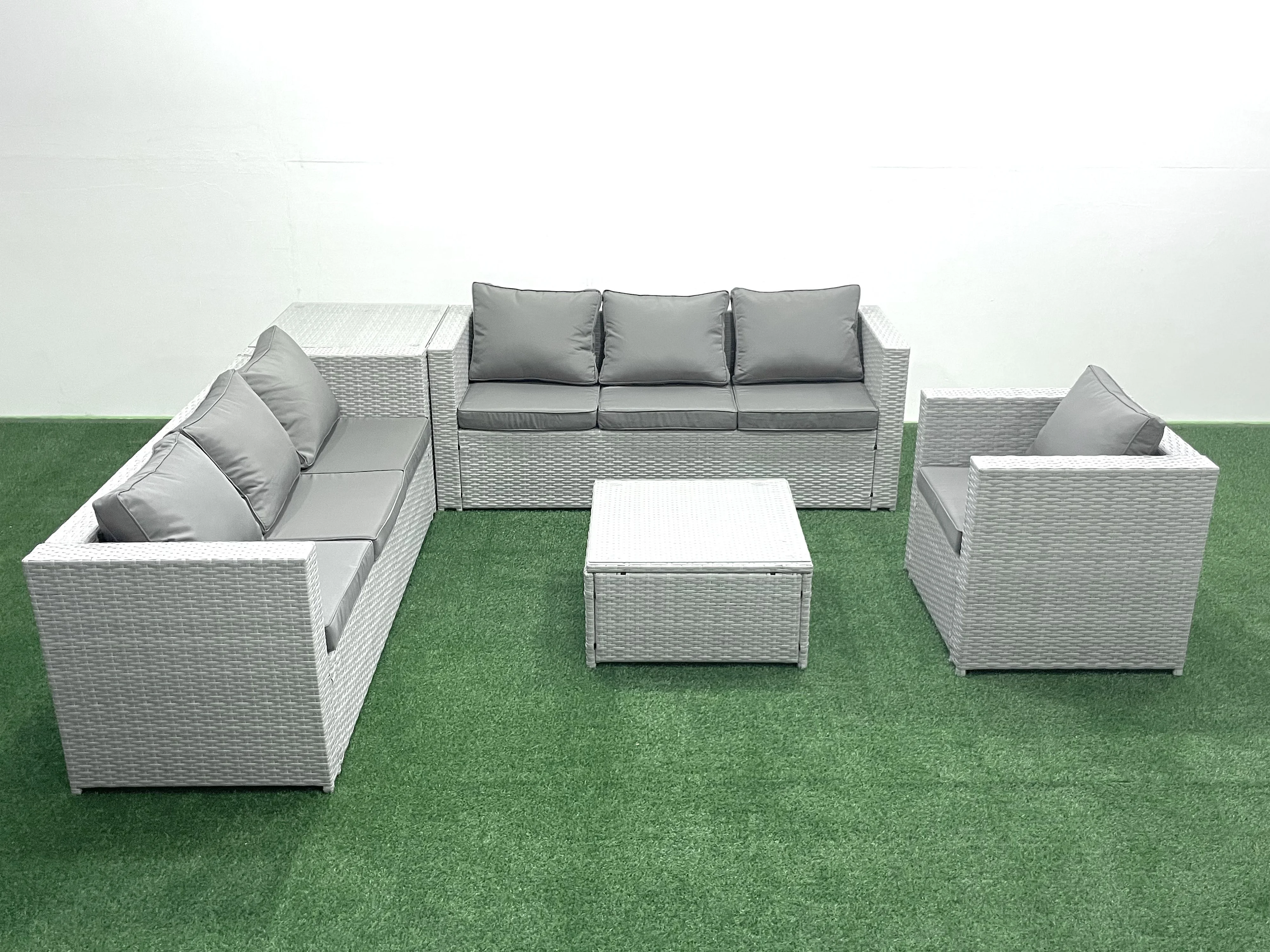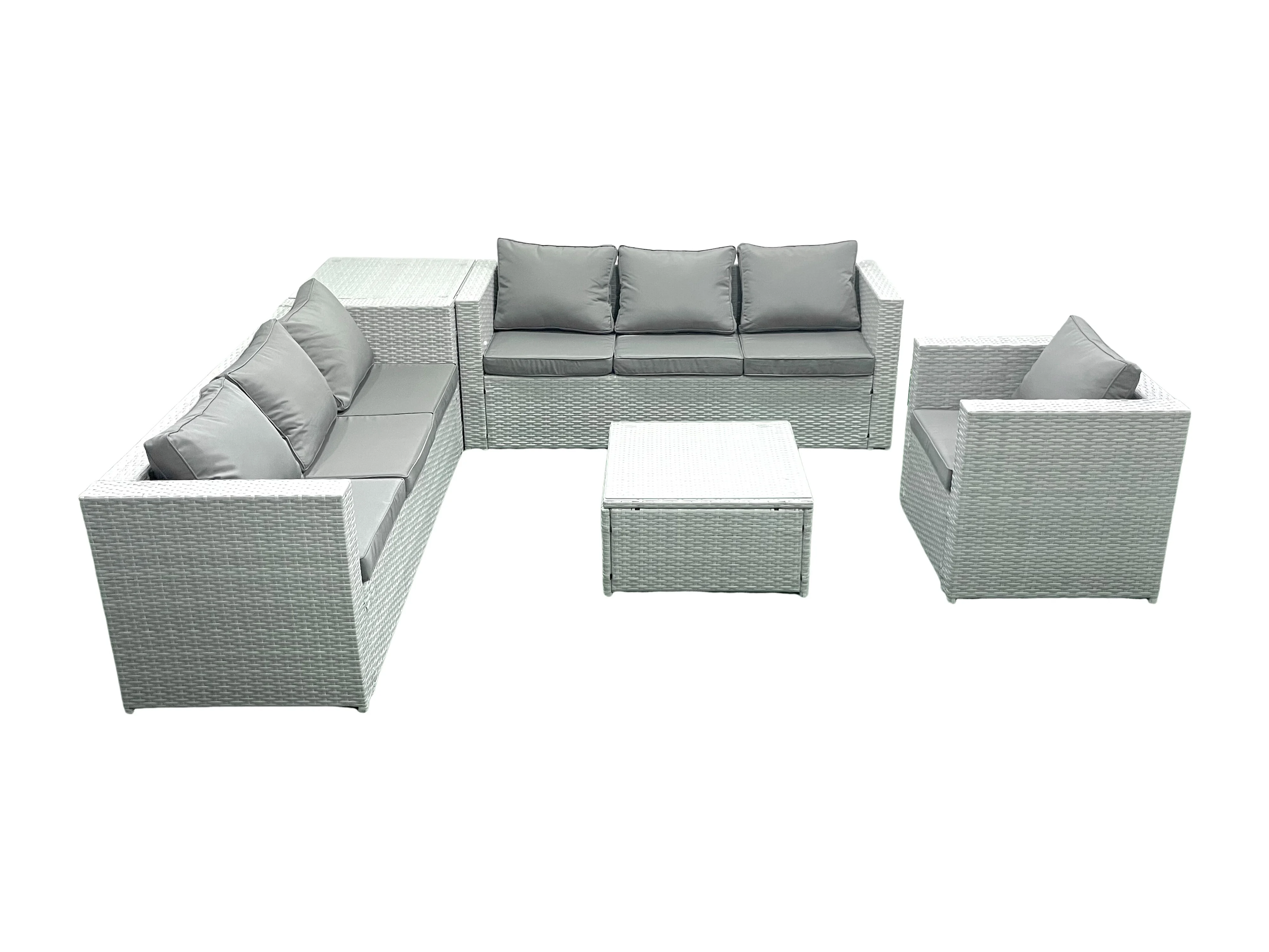 Polyrattan Sofa Gartenmöbel Set mit Sessel Quadratischer Couchtisch Beistelltisch Hellgrau gemischt