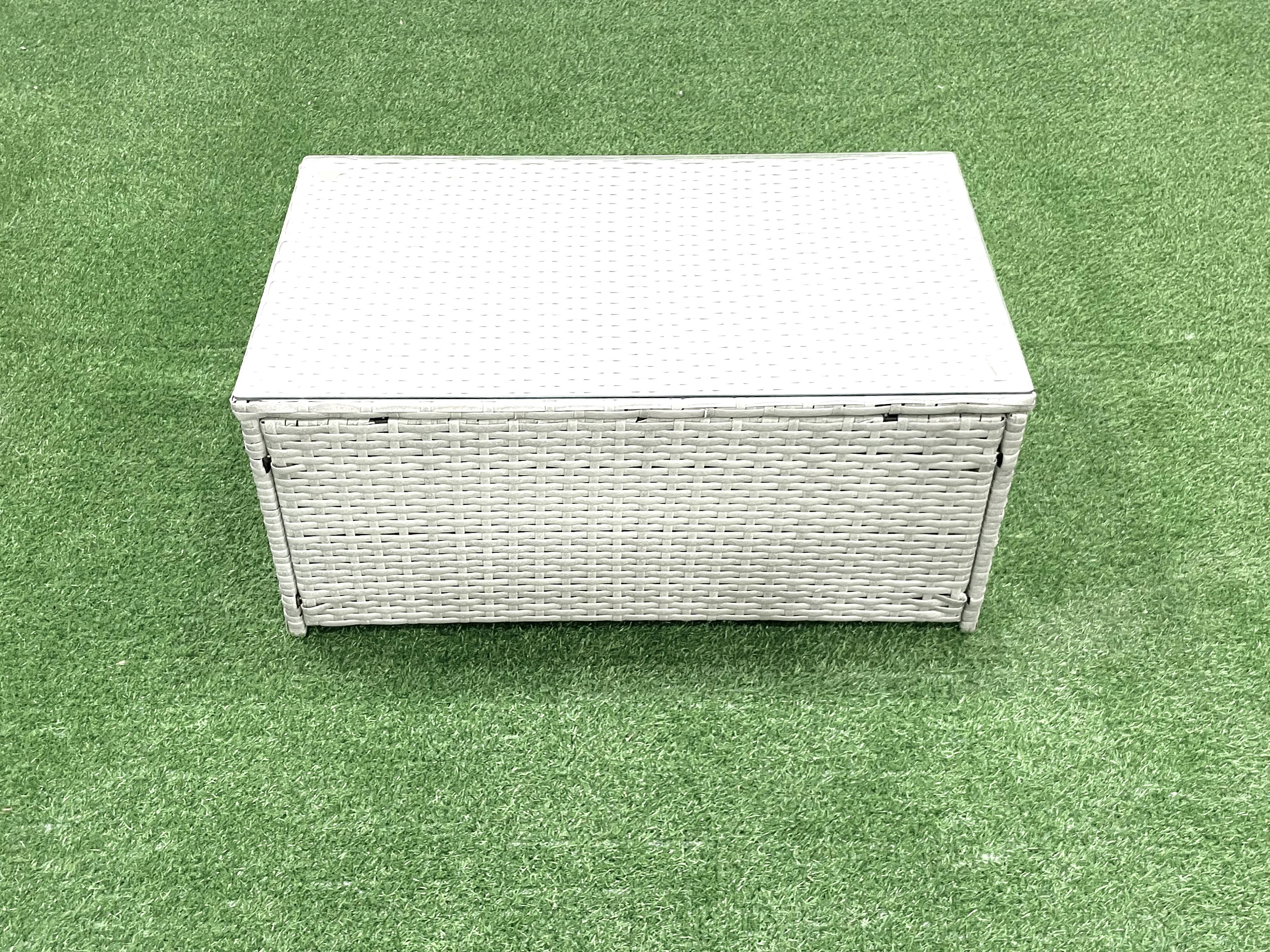 Polyrattan Sofa Gartenmöbel Set mit Sessel Rechteckiger Couchtisch 2 Großer Hockern Hellgrau gemischt