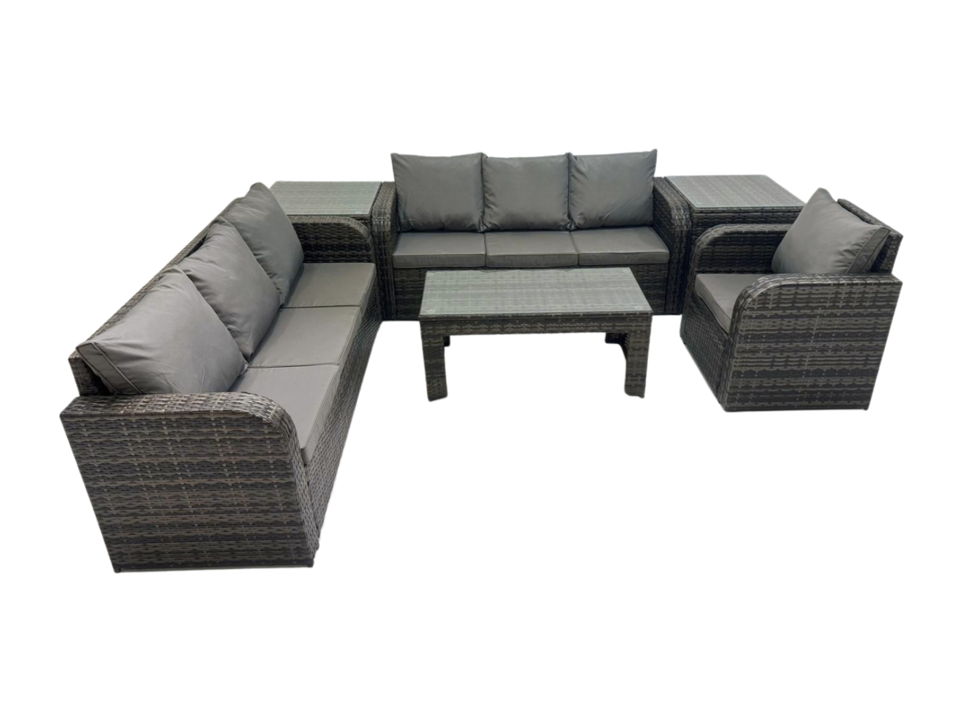 Polyrattan Sofa Set 7-Sitzer Terrassen Gartenmöbelset mit 2 Beistelltischen Liegestühle Couchtisch Dunkelgrau Gemischt