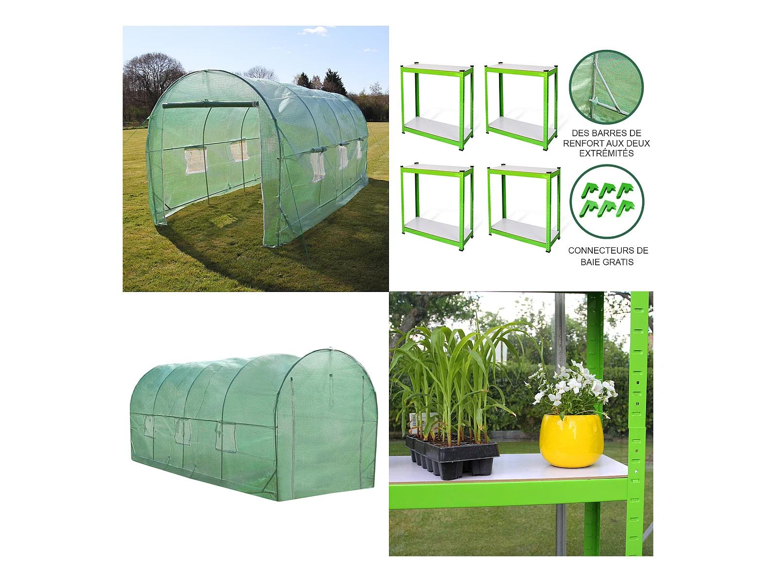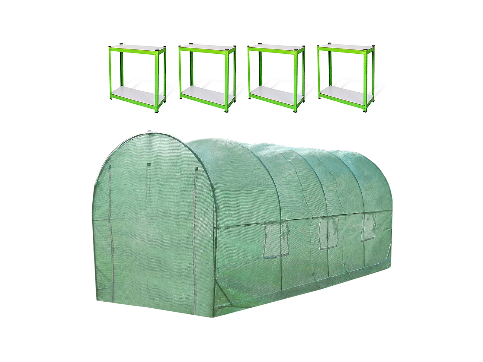 Polytunnel mit Folie und Regale Gewächshaus Treibhaus Tomatenhaus Pflanzenhaus Folientunnel 19mm 5m x 2m