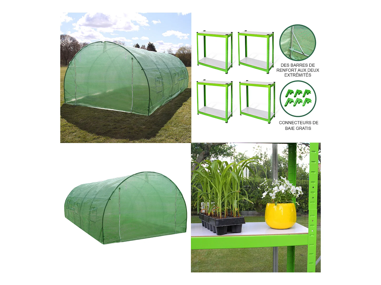 Polytunnel mit Folie und Regale Gewächshaus Treibhaus Tomatenhaus Pflanzenhaus Folientunnel 25mm 6m x 3m