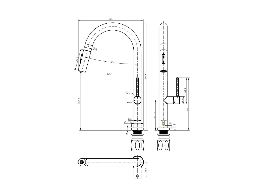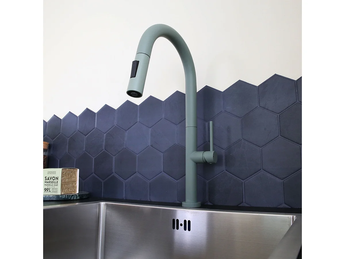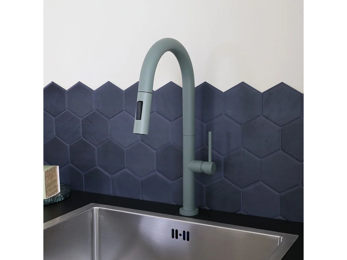 Portofino Spültischmischer mit Handbrause grau grün Essebagno