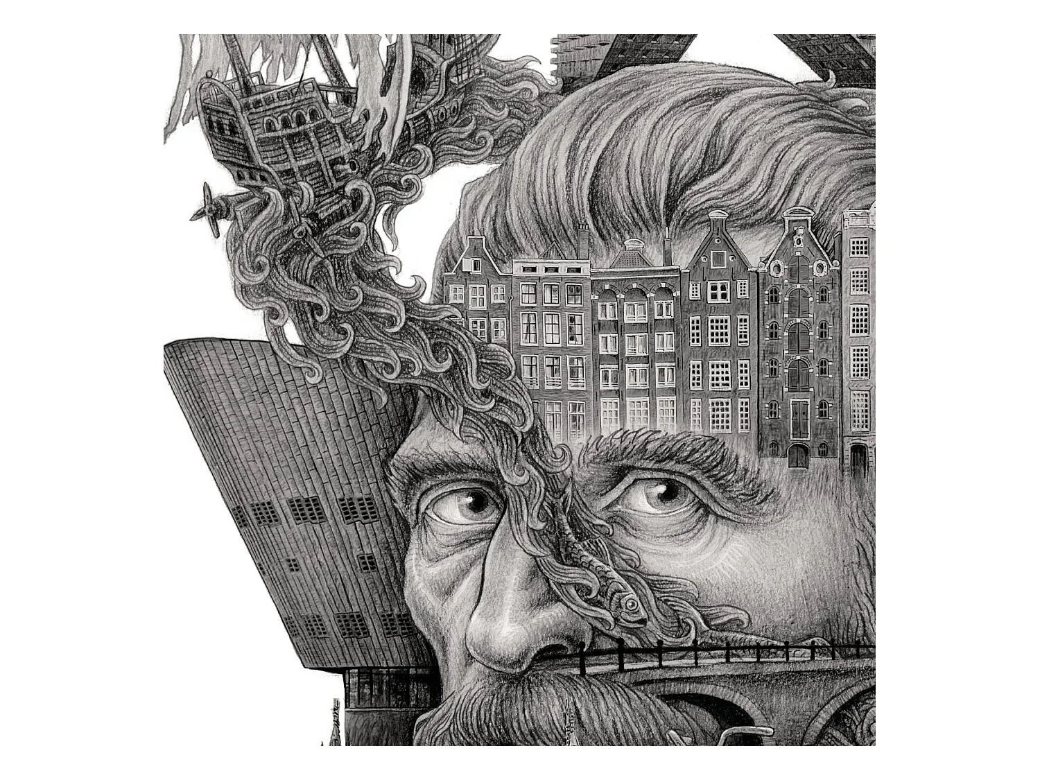 Poster, elegantes niederländisches Dekor, Amsterdamer Kunst, Stadtplakat 42x59,4 cm Amsterdam.