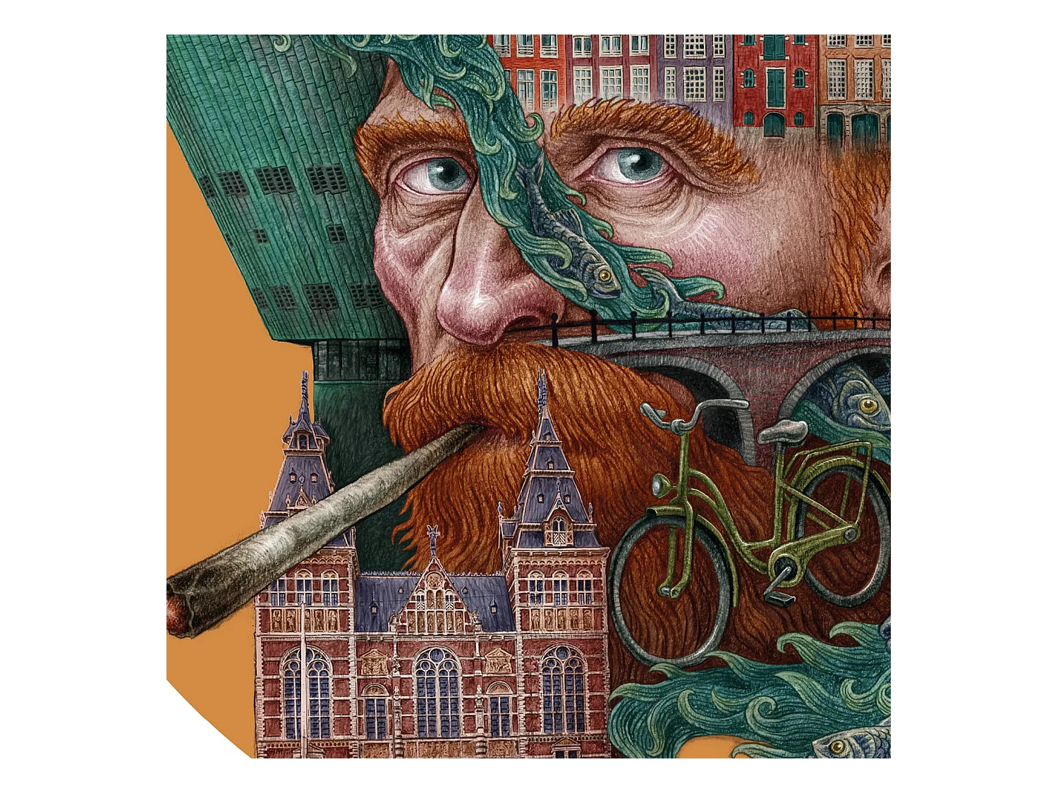 Poster, niederländisches Stadtdekor, Amsterdam, 59,5 x 84 cm Amsterdamer Kunst, urbaner Druck.