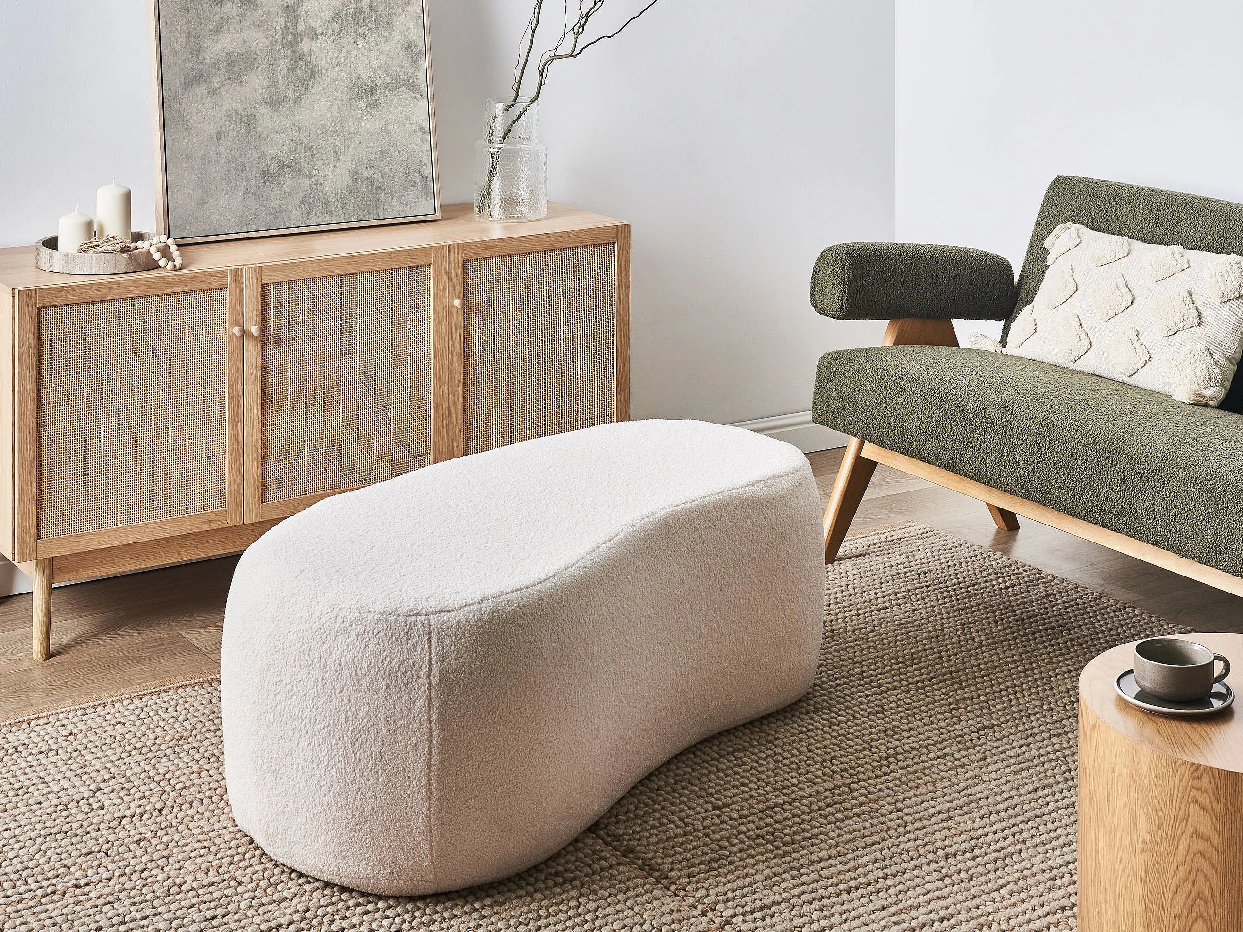 Pouf BAYARD Bouclé Cremeweiss 115 cm 56 cm 43 cm