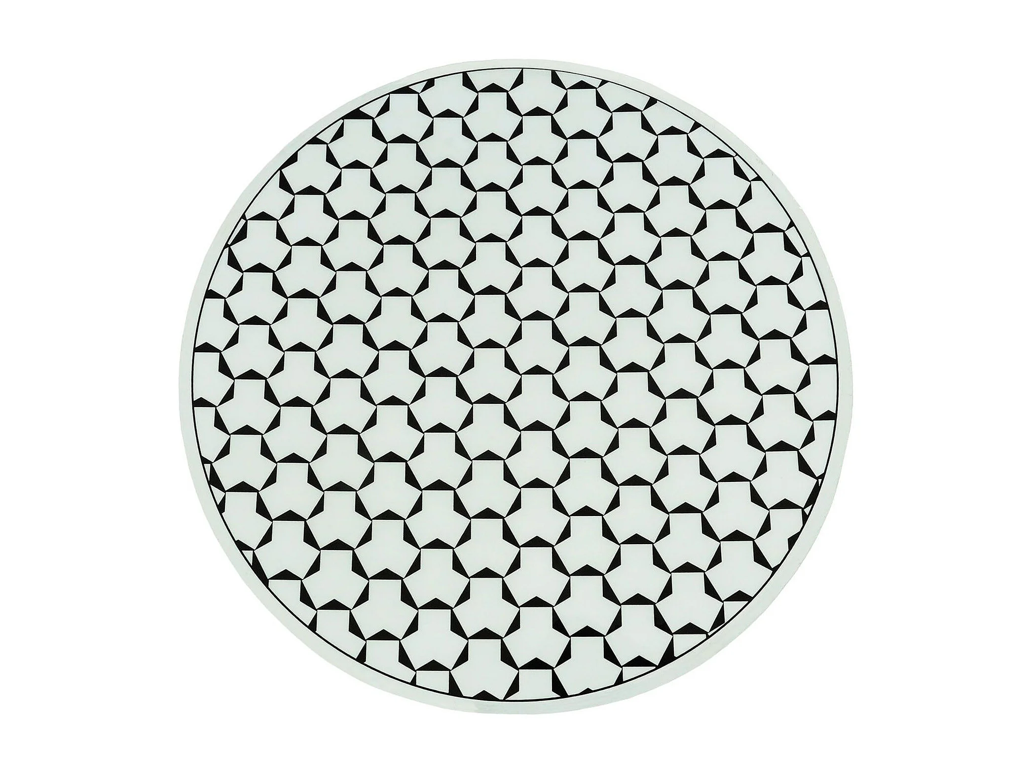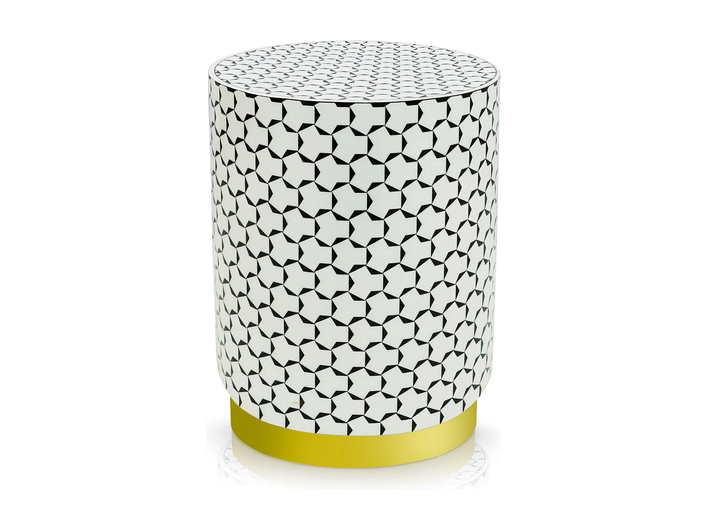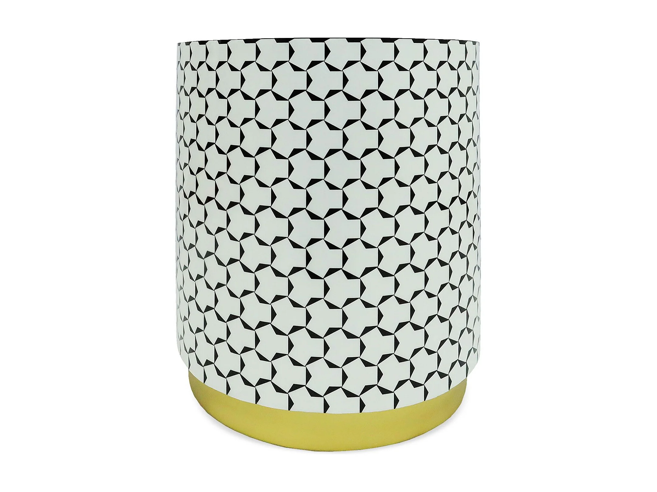 Pouf cylindrique Combino Motif géométrique Noir et blanc pied or