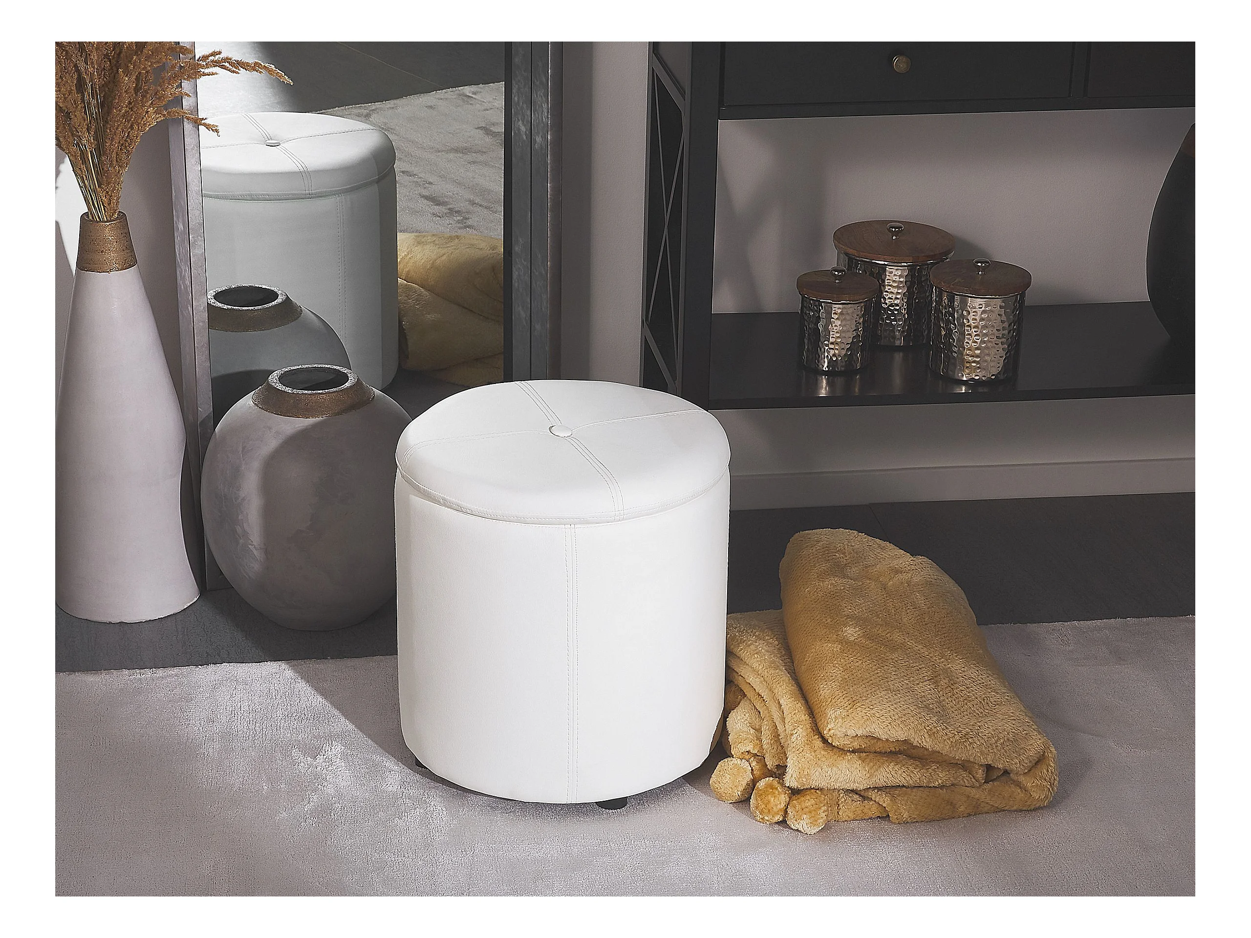 Eleganter Pouf aus Kunstleder in Weiß mit praktischem Stauraum Maryland