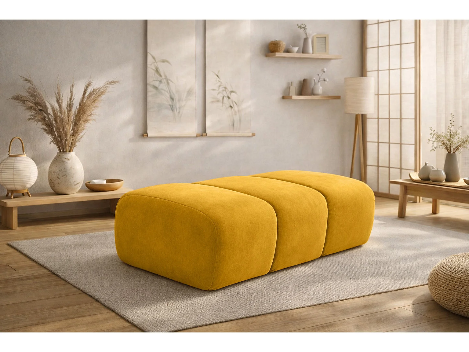 Pouf modular, Veloursstoff Bluvel, Golden, CROISSANT