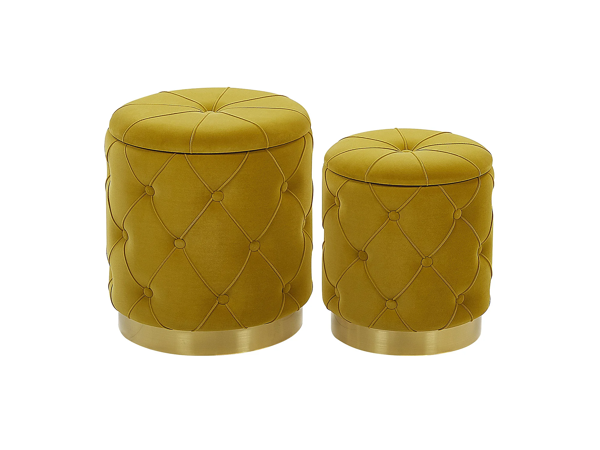 Runder Pouf im 2er Set Samt gelb Ottoman Sitzpouf Chesterfield Stil Pueblo