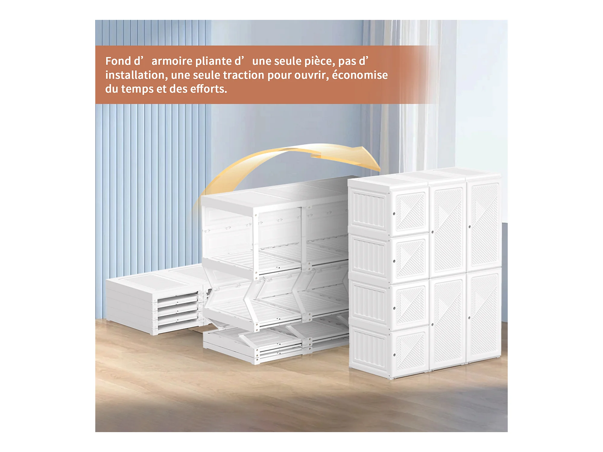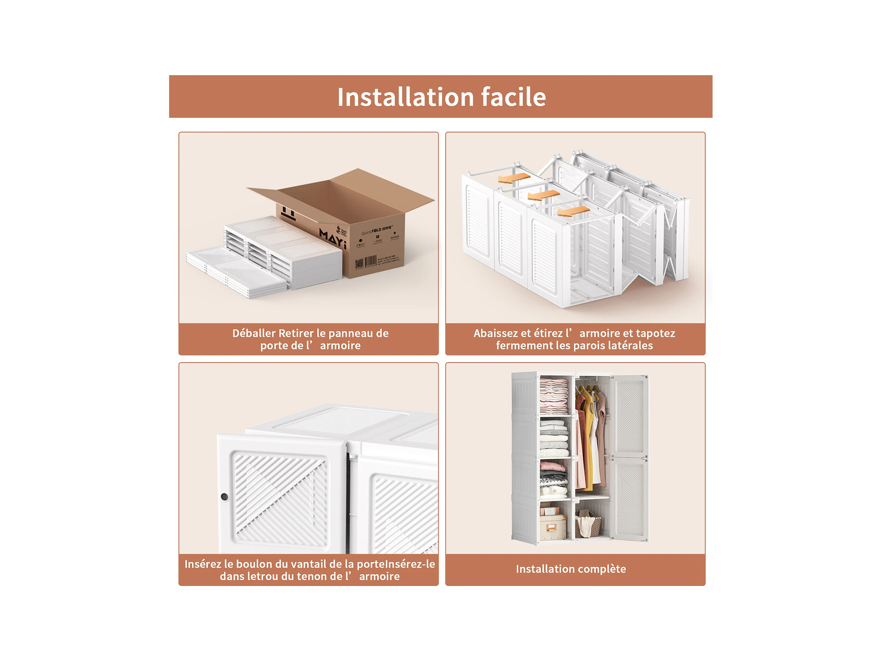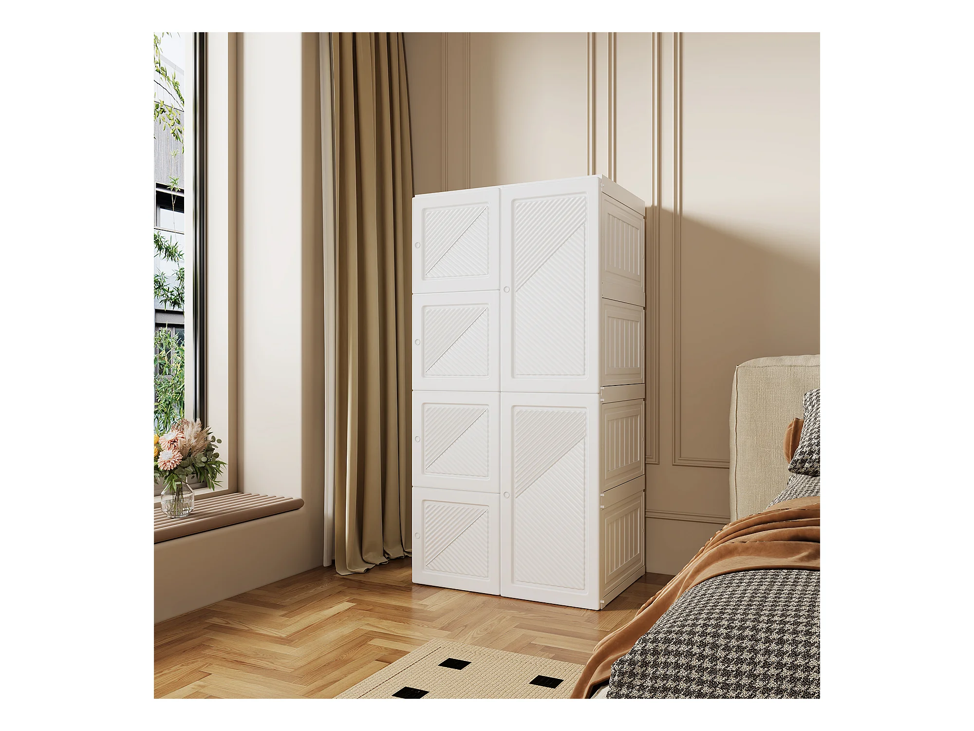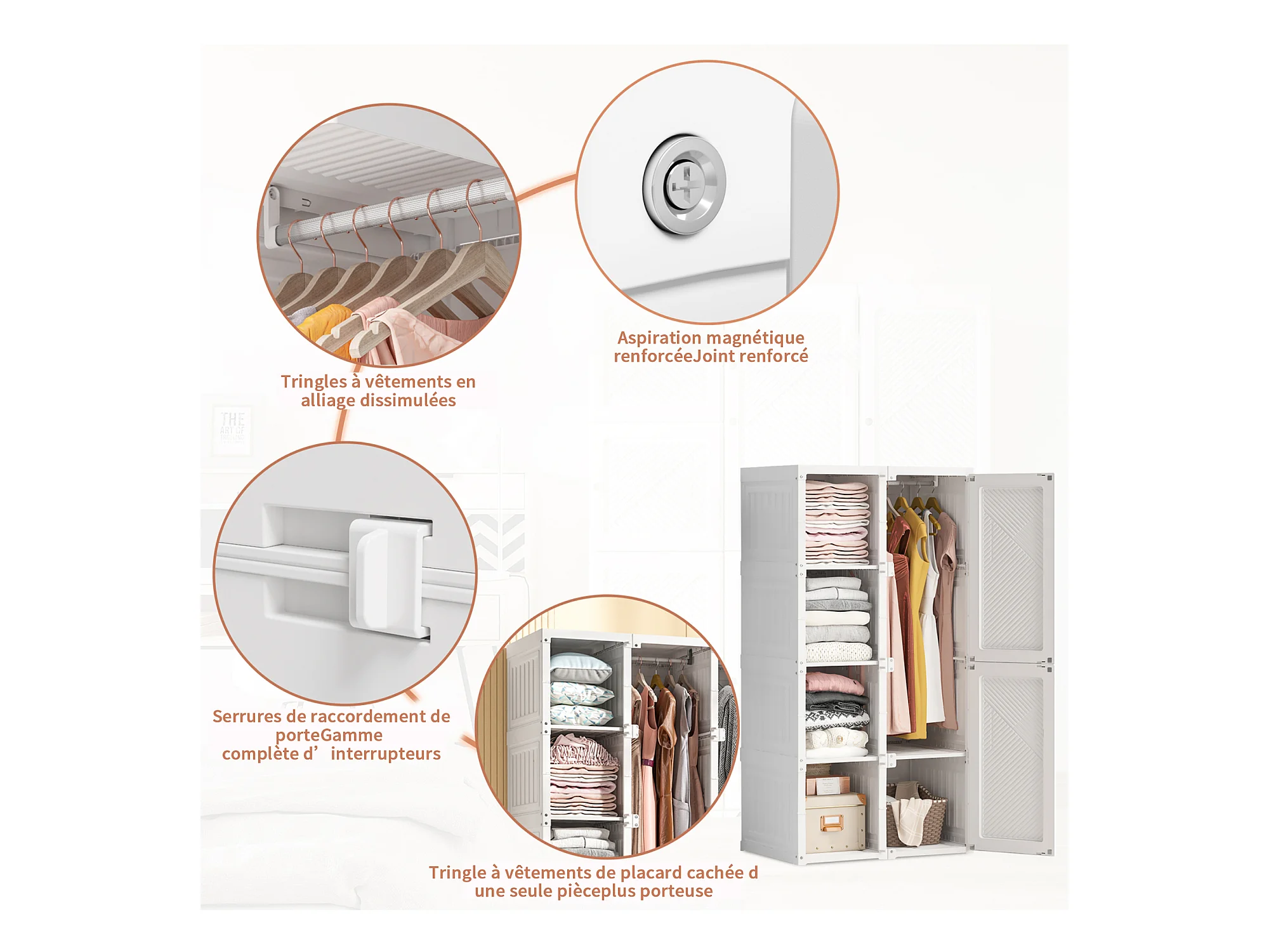 PP Faltkleiderschrank mit 6 Türen, 5 Fächern und 1 Kleiderstange – Weiß, 136 x 69 x 50 cm, Fassungsvermögen 470 L