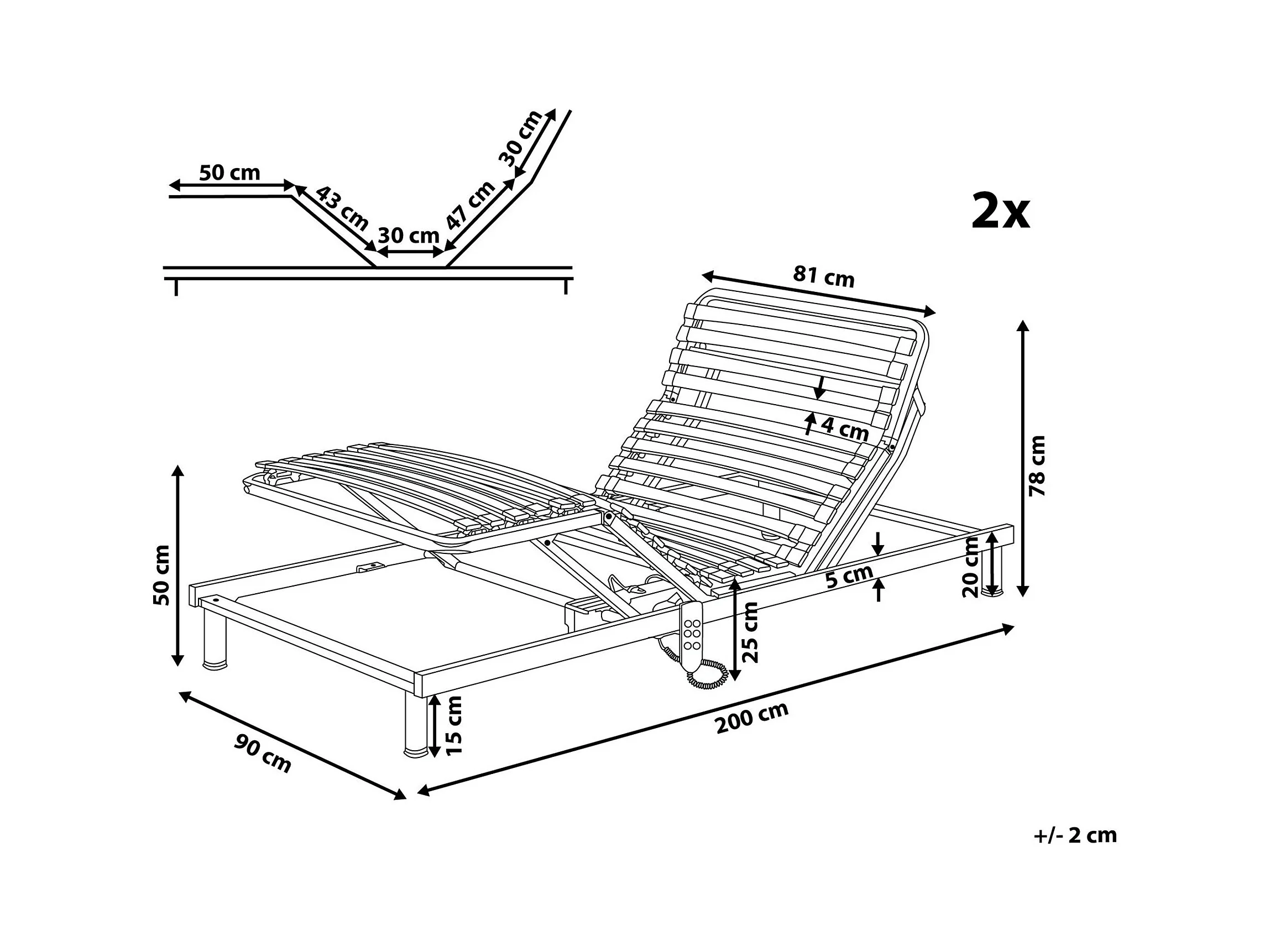 Praktisches Lattenrost Set elektrisch vertellbar aus Holz 2x 90x200 cm Comfort