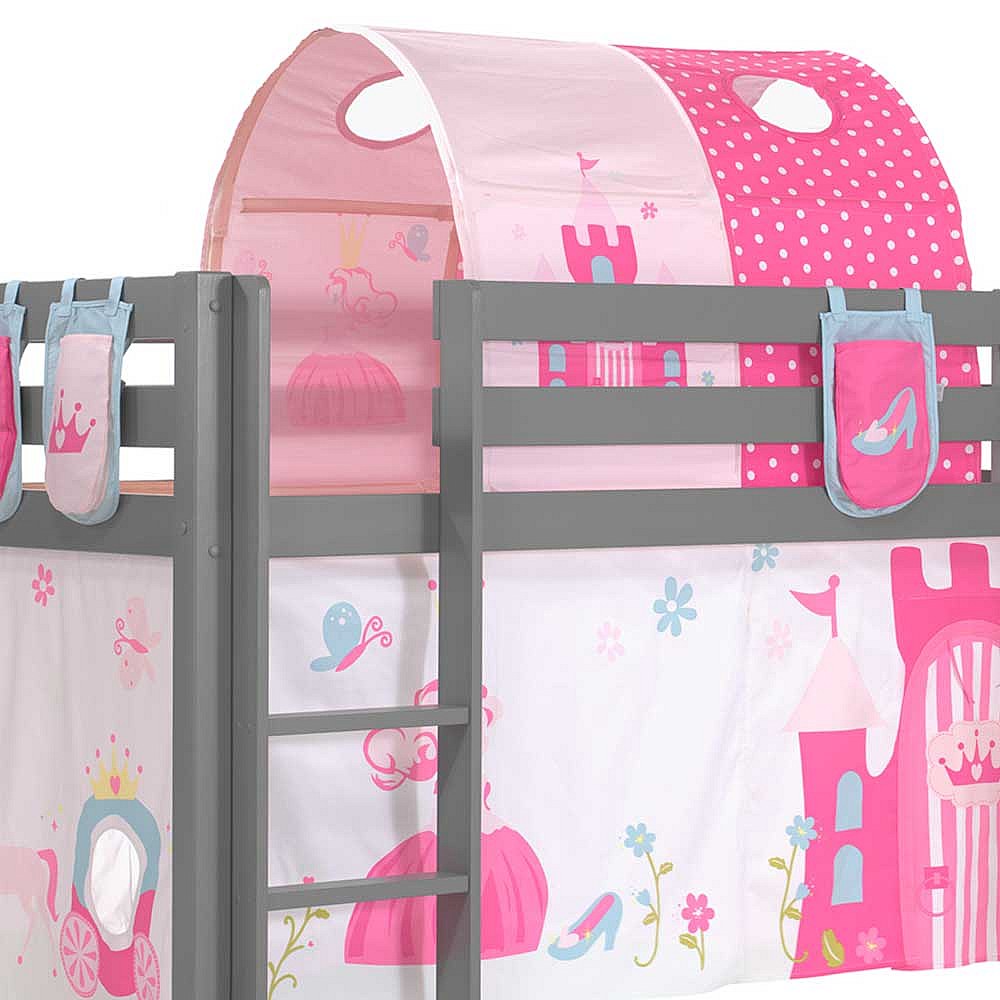 Prinzessinbett Rutsche Vorhang und Stofftunnel Grau Rosa Pink