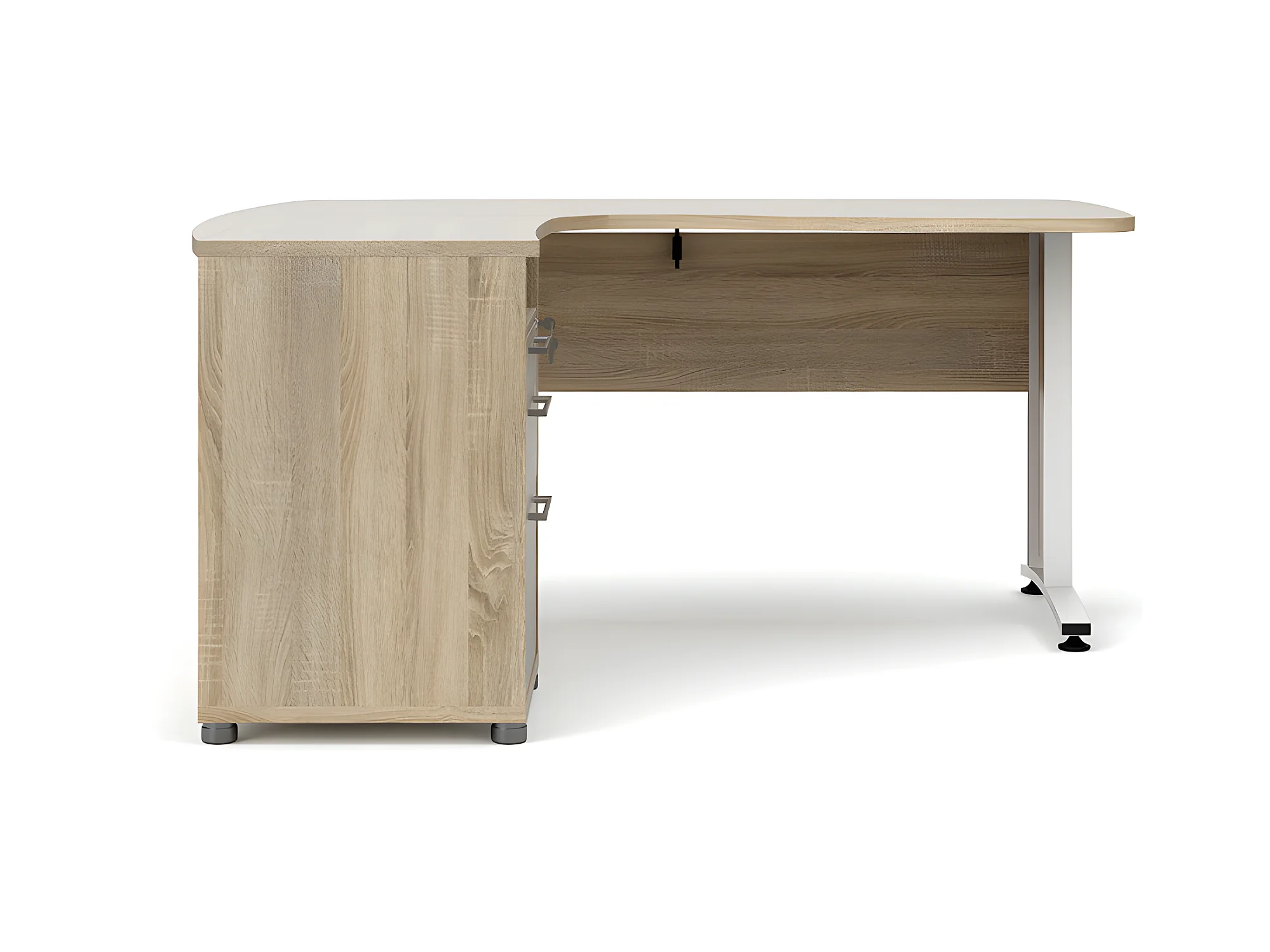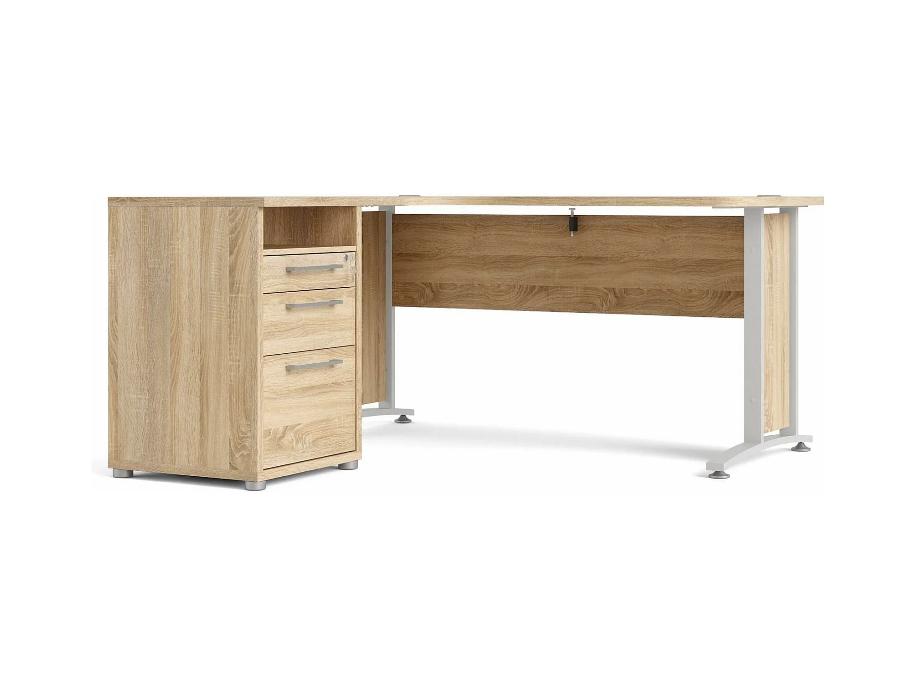 Prisme Schreibtisch 3 Schubladen. Eiche Dekor und weiss.