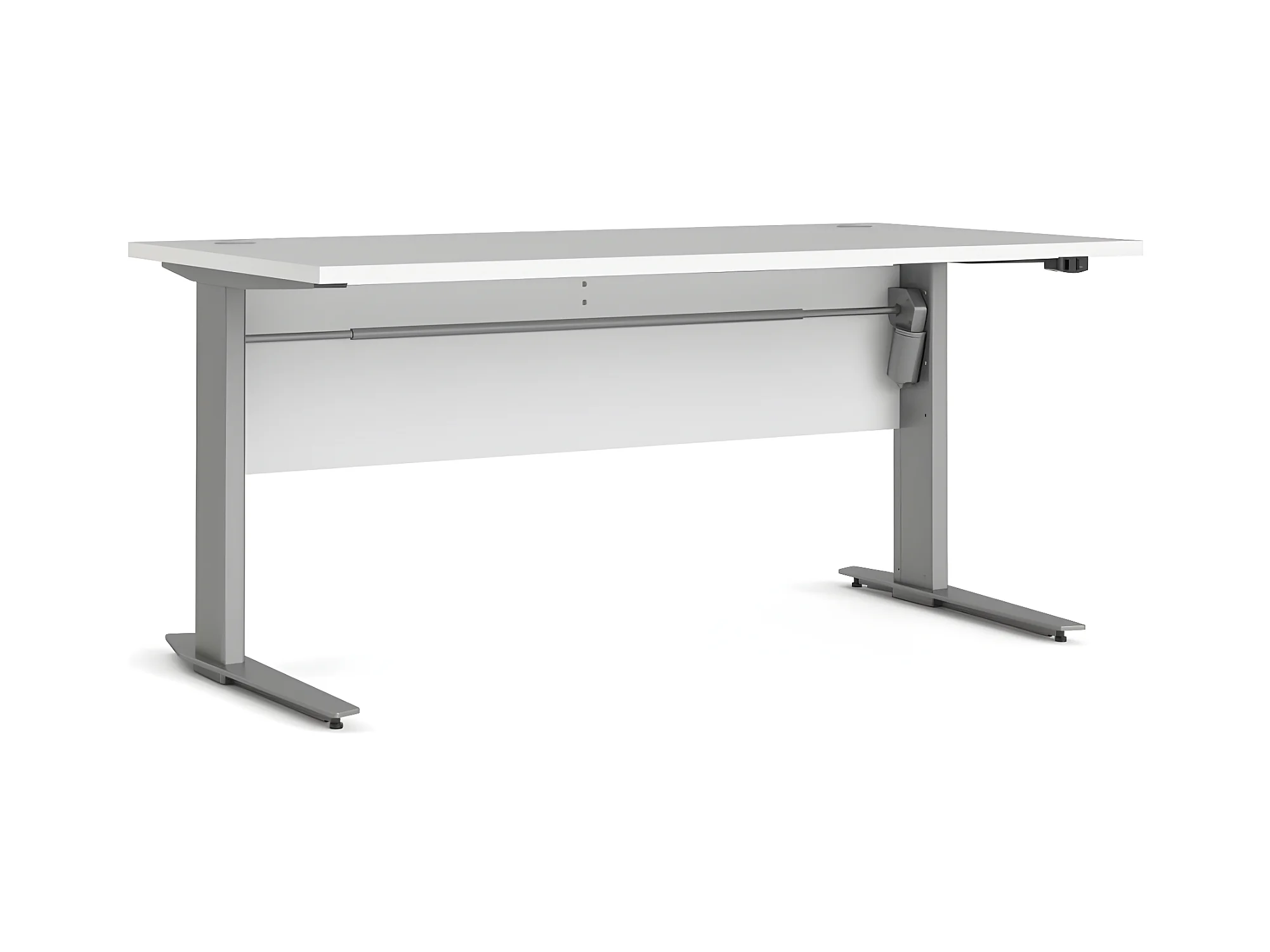 Prisme Schreibtisch A elektronisch heben/senken Weiss und silbergrauer Stahl.