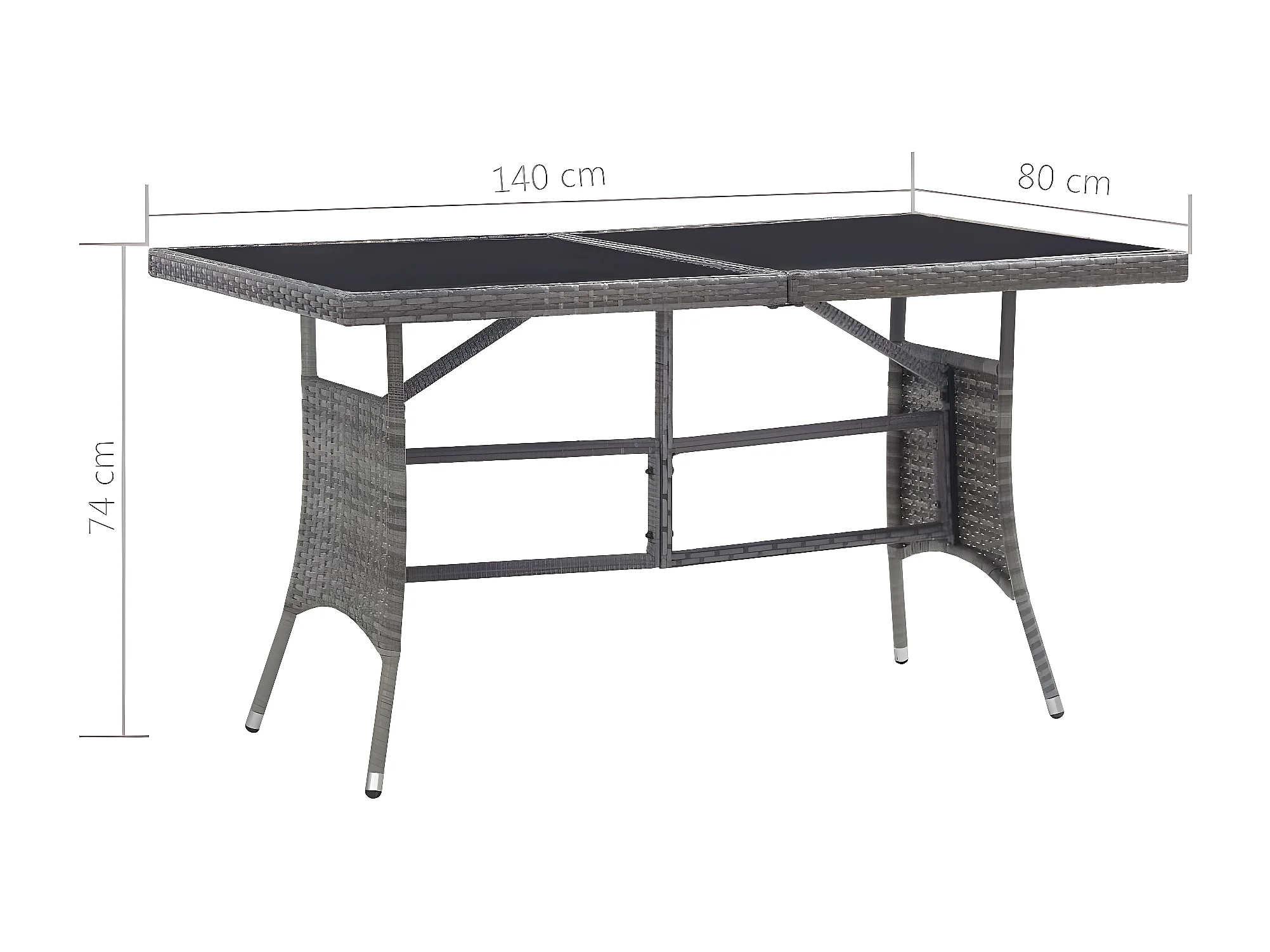 Prolenta Premium - Gartentisch Grau 140 x 80 x 74 cm Poly Rattan