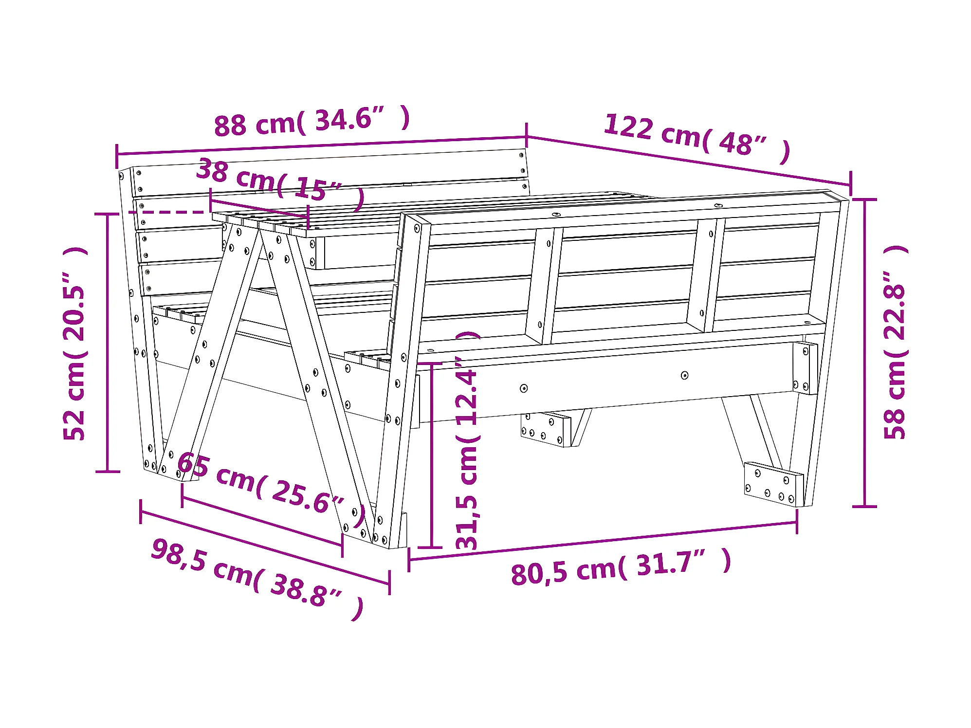 Velmi Picknicktisch für Kinder 88x122x58 cm Imprägniertes Kiefernholz