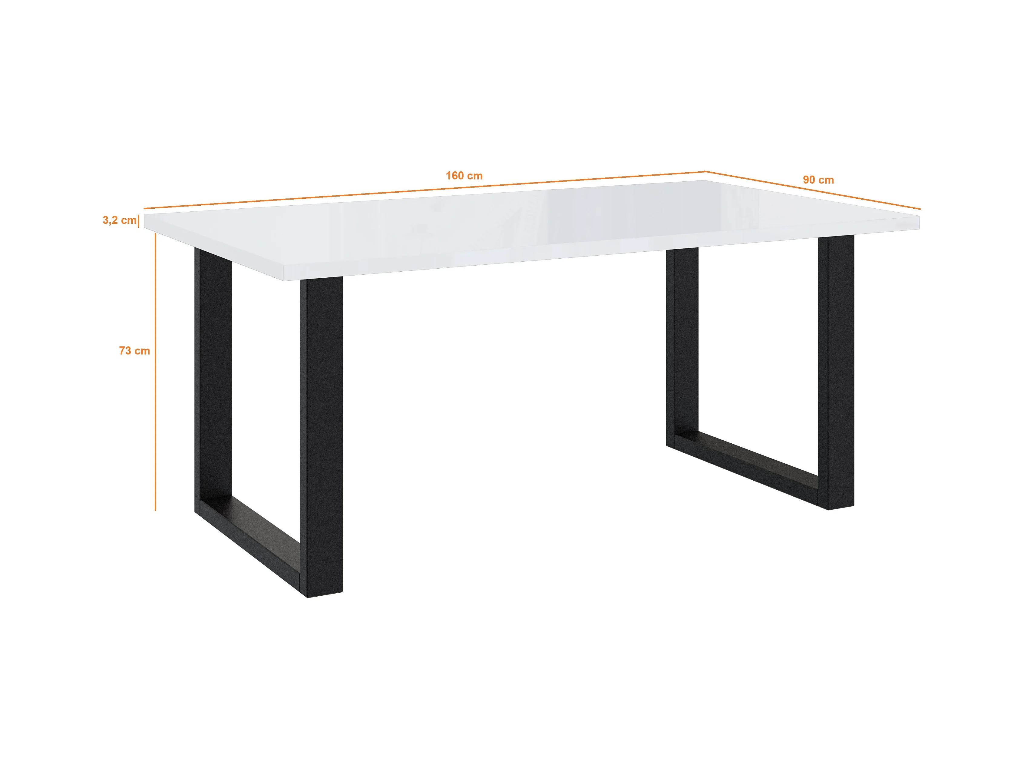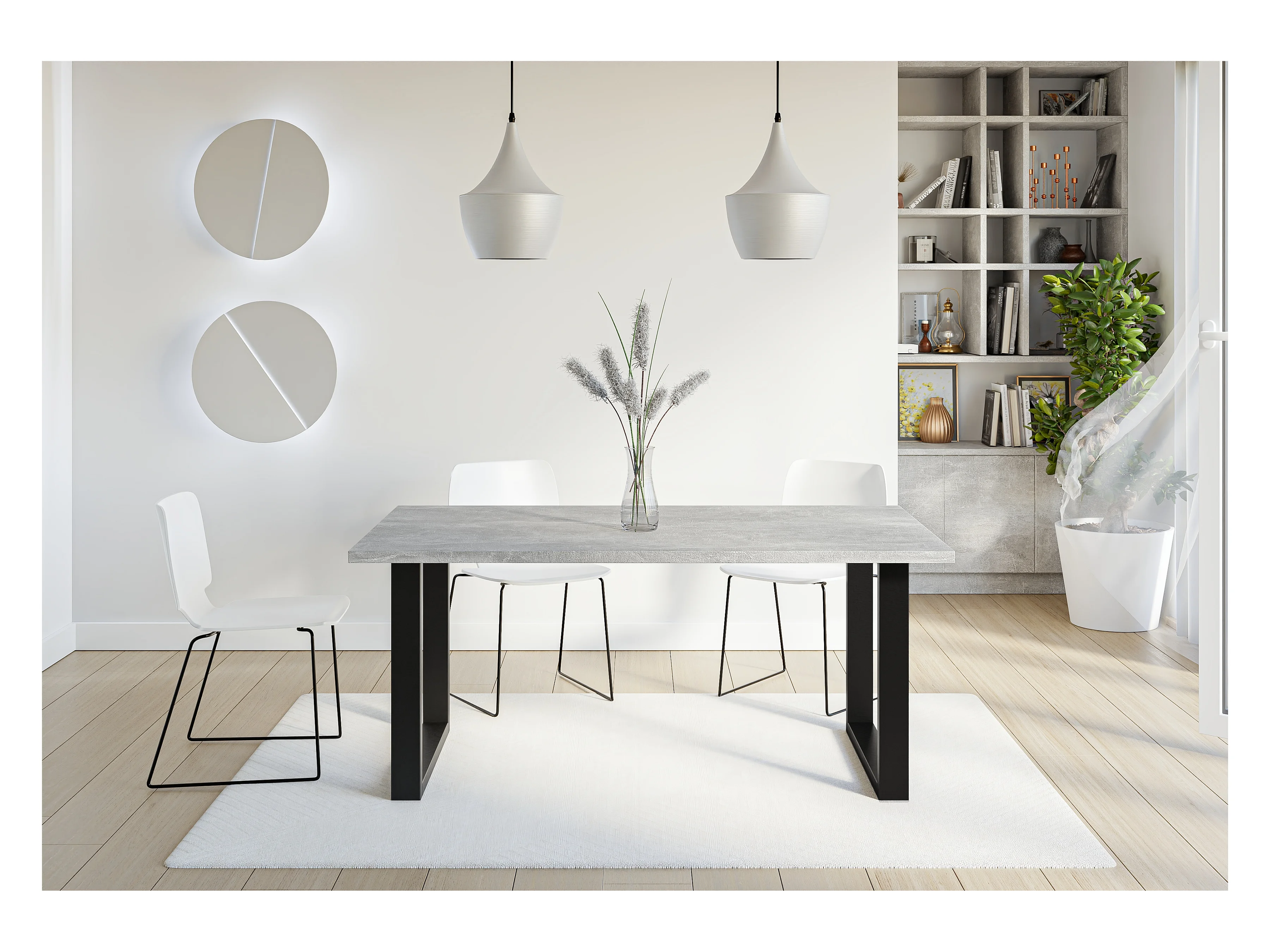 PROROOM FURNITURE - Brooky Table - Esstisch - Rechteckig - 160x90x75 cm - mit Schwarzen Metallbeinen in U-Form - für Esszimmer, Wohnzimmer, Salon - Grau/Steinoptik