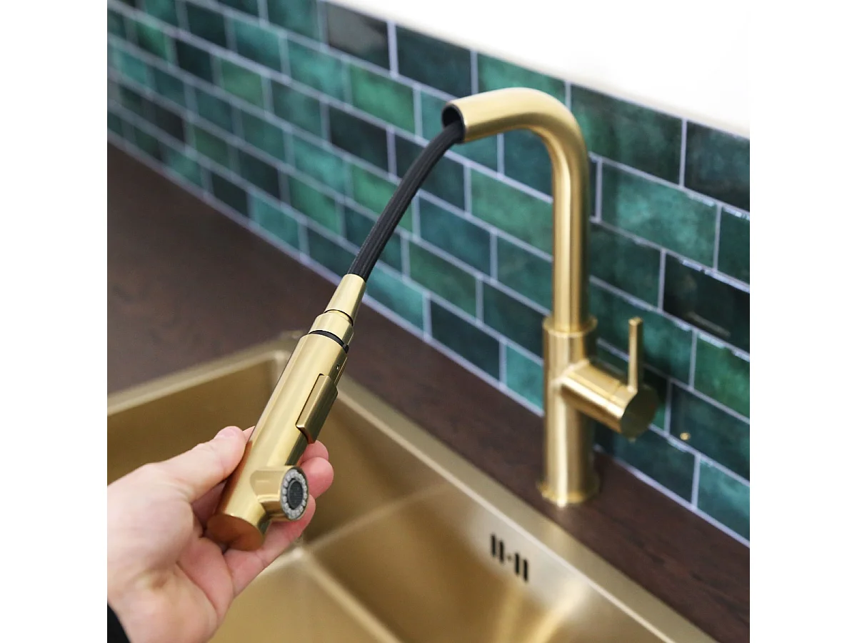 Pure II Spültischmischer mit ausziehbarer Handbrause Gold gebürstet Essebagno