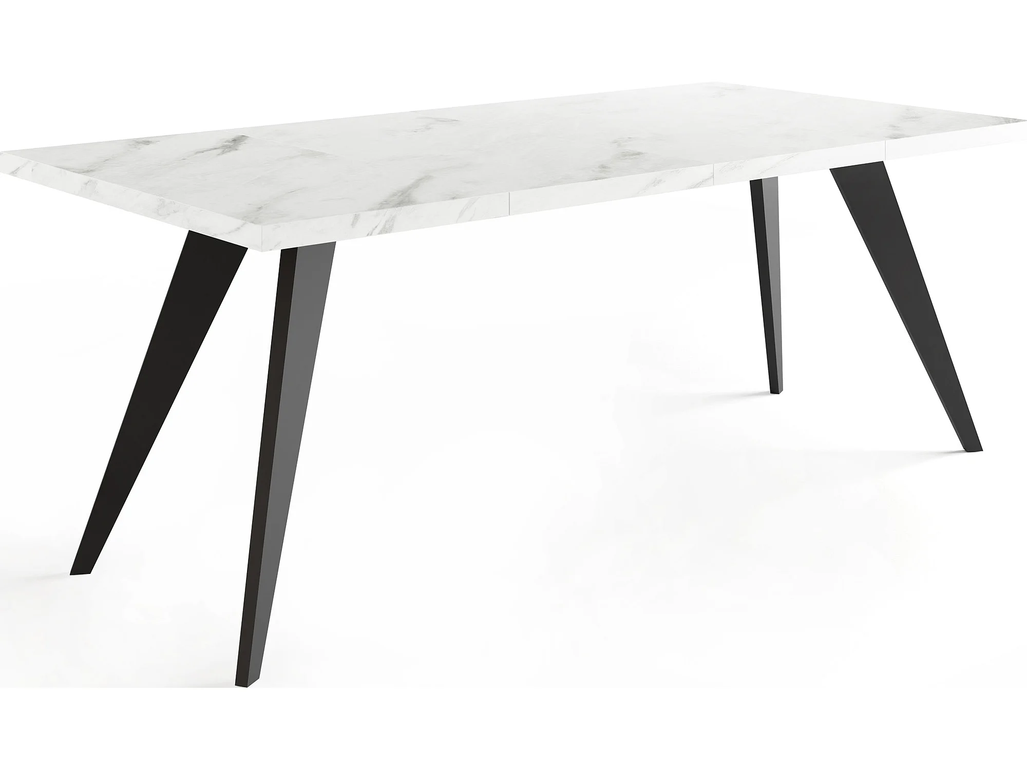 Quadratischer Ausziehbarer Esstisch Quadro 100-150 cm - Industrial Esszimmertisch mit Schwarzen Holzbeinen für 4-6 Personen - Loft-Stil Küchentisch - Marmor Weiß