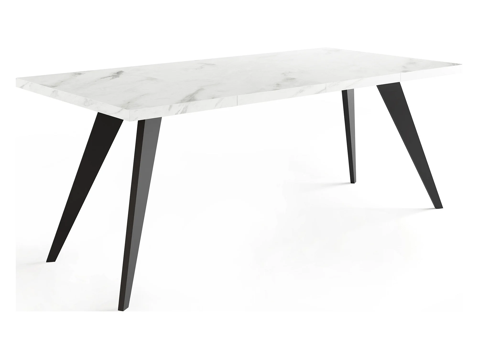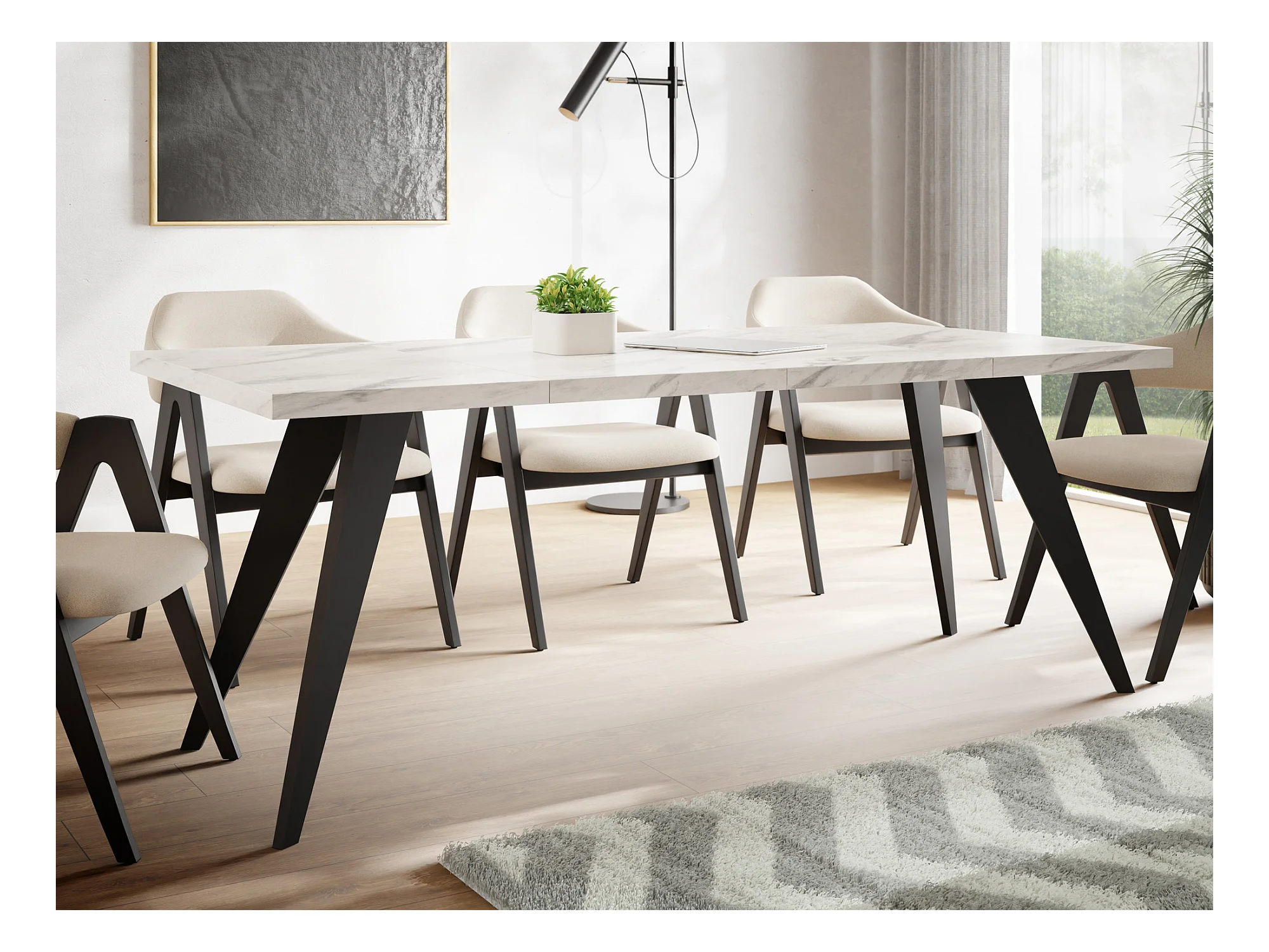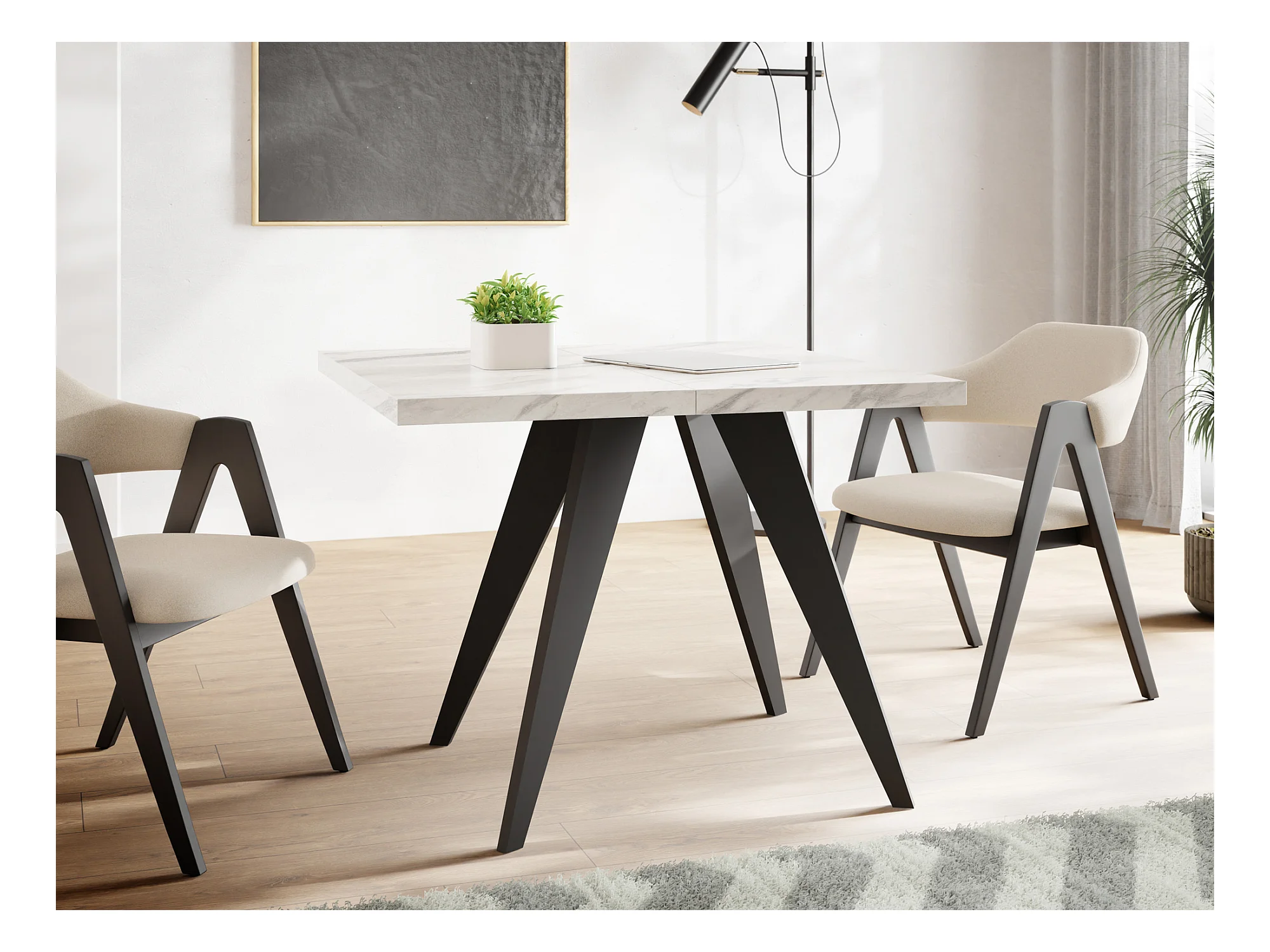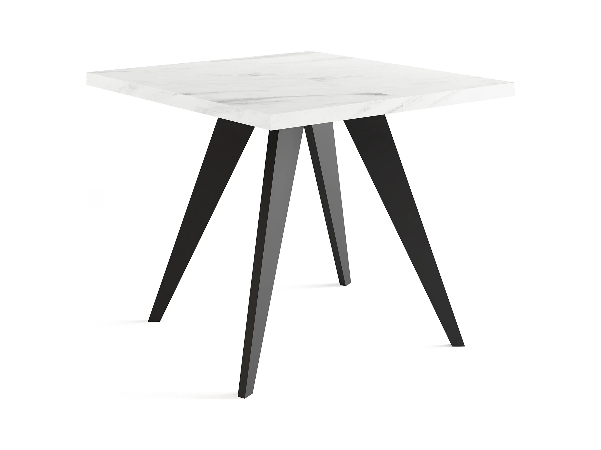 Quadratischer Ausziehbarer Esstisch Quadro 100-200 cm - Industrial Esszimmertisch mit Schwarzen Holzbeinen für 4-8 Personen - Loft-Stil Küchentisch - Marmor Weiß
