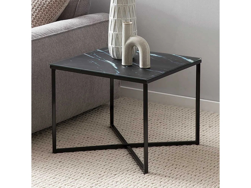 Quadratischer Beistelltisch in Schwarz Glasplatte