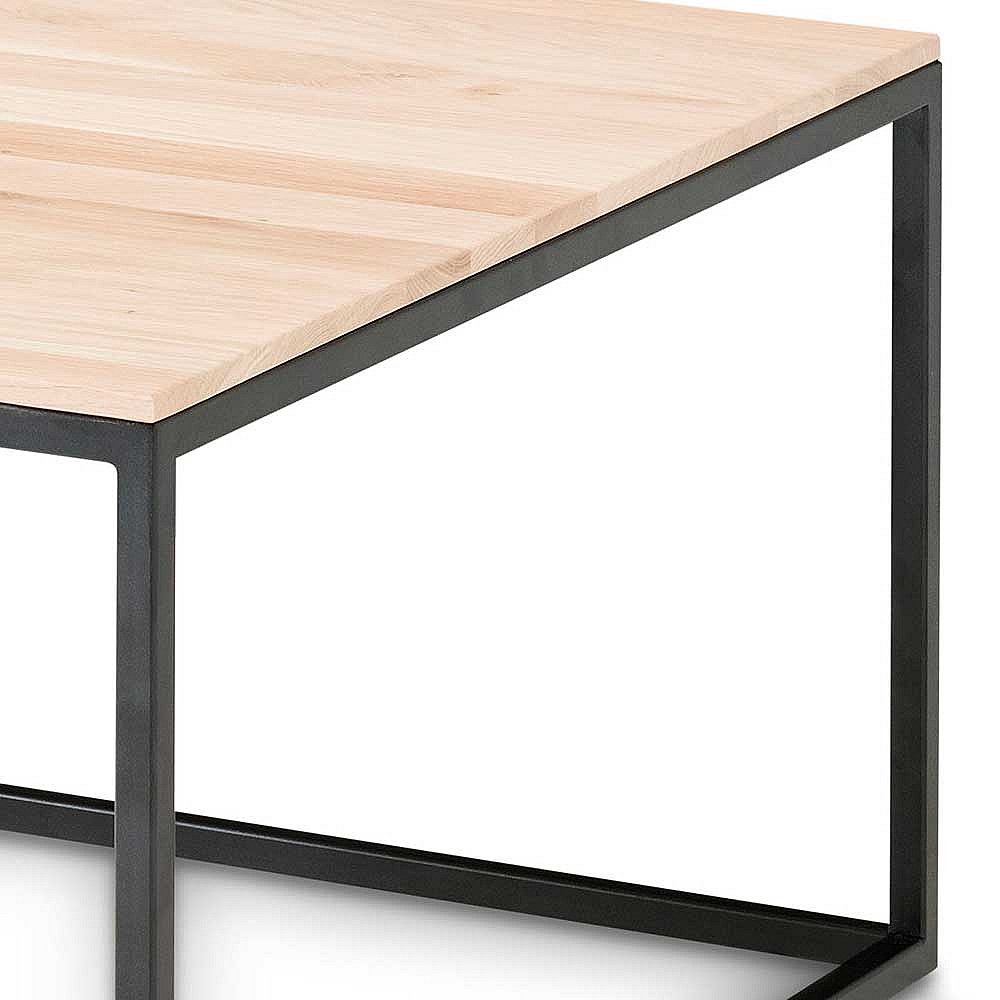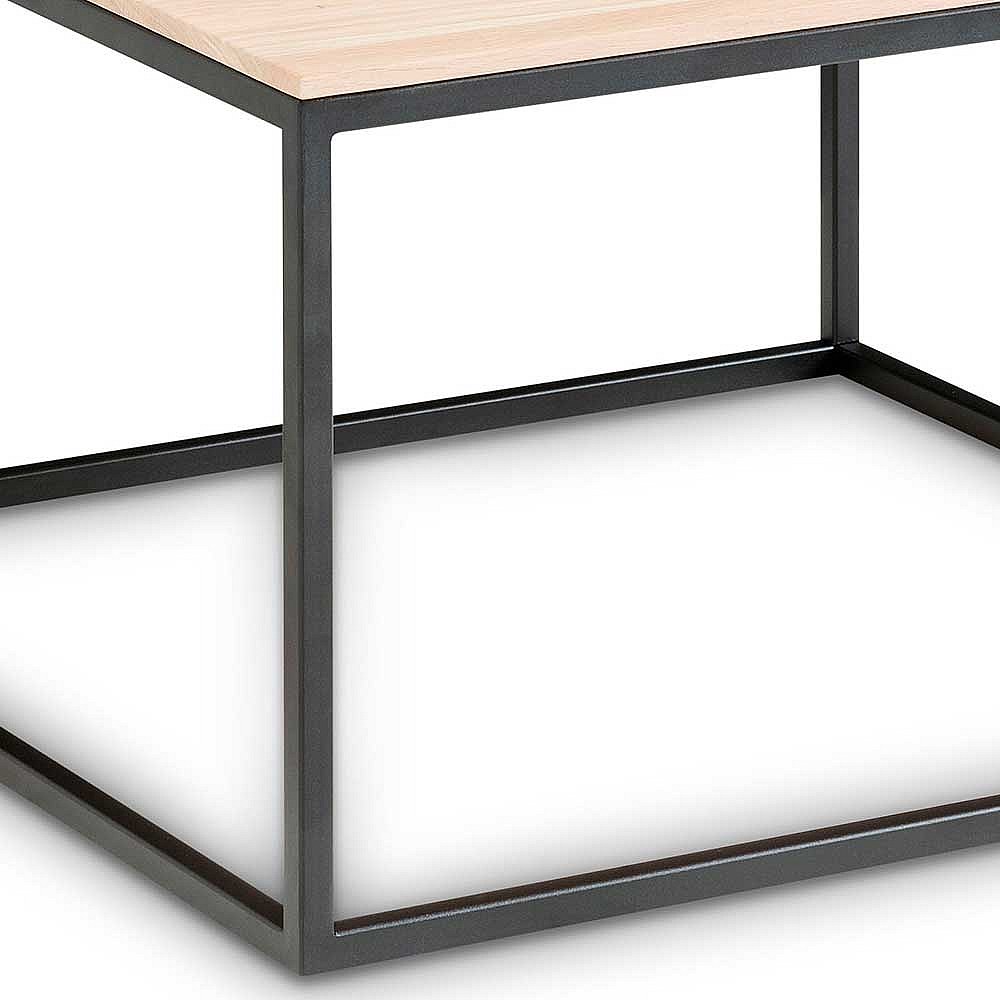 Quadratischer Couchtisch in Eiche Bianco massiv Metall