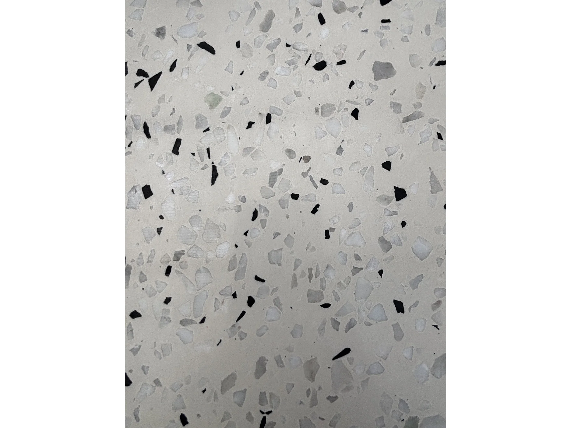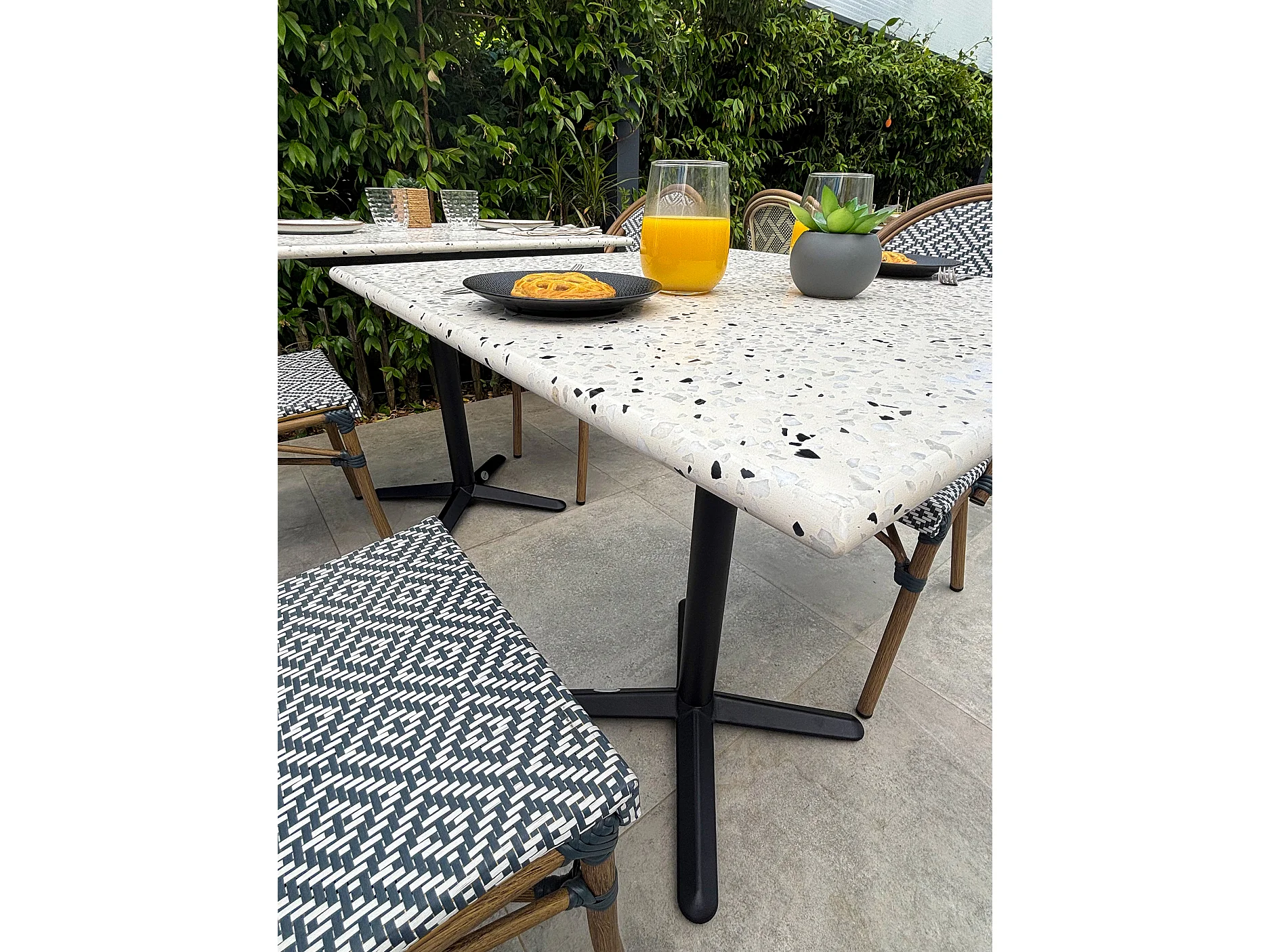 Quadratischer Gartentisch aus Stahl mit Terrazzoplatte