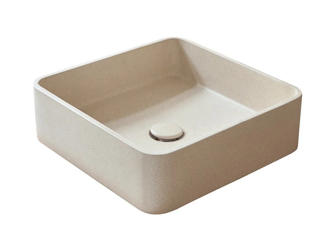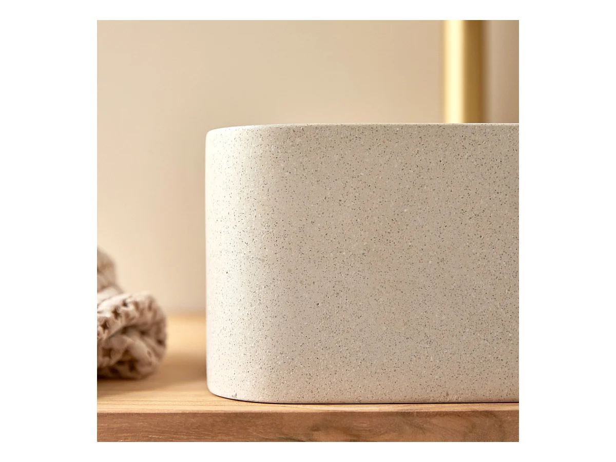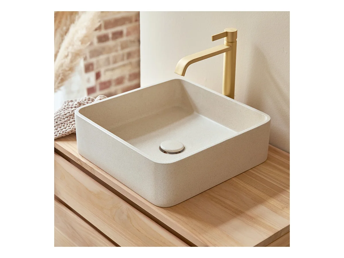 Quadratischer Waschtisch Thais aus cremefarbenem Terrazzo