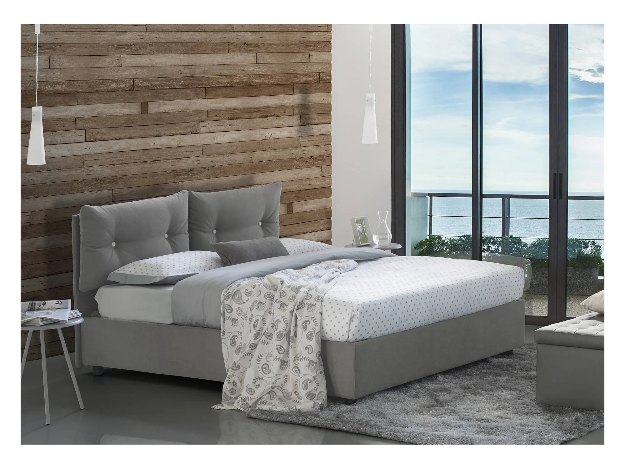 Quadratisches und halbes Bett Dabbadi, Containerbett mit Stoffbespannung, 100% Made in Italy, Frontöffnung, inklusive Matratze Cm 120x190, Grau