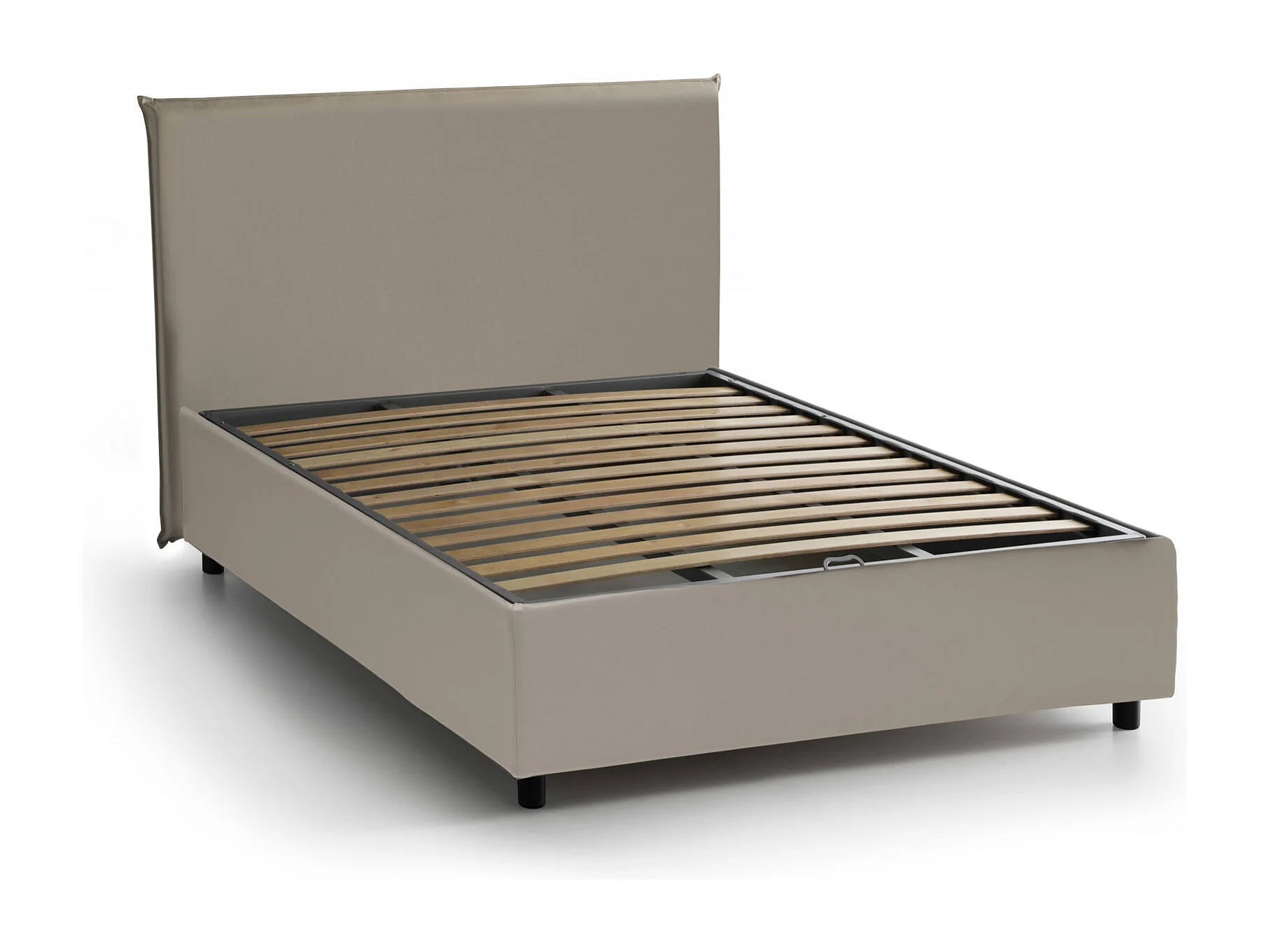 Quadratisches und halbes Bett Daceros, Containerbett mit Kunstlederbezug, 100% Made in Italy, Frontöffnung, inklusive Matratze Cm 120x200, Turteltaube