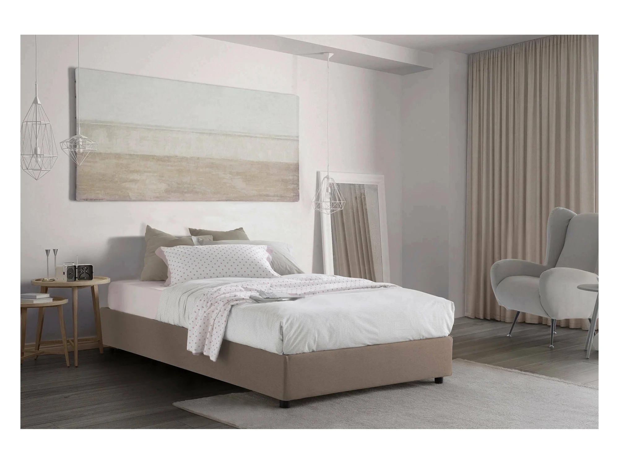 Quadratisches und halbes Bett Daronic, Containerbett mit Stoffbespannung, 100% Made in Italy, Seitliche Öffnung, passend für Matratze Cm 120x190, Turteltaube