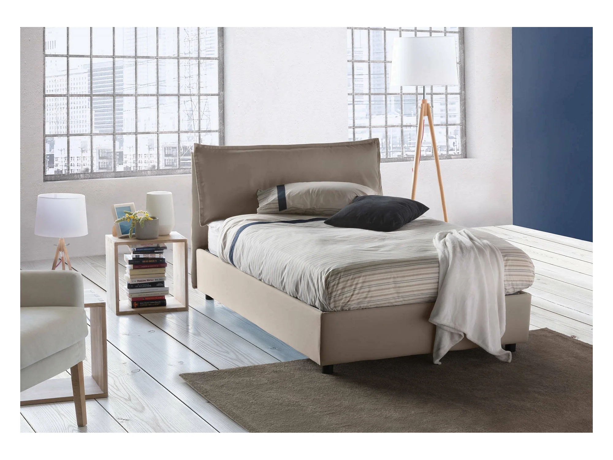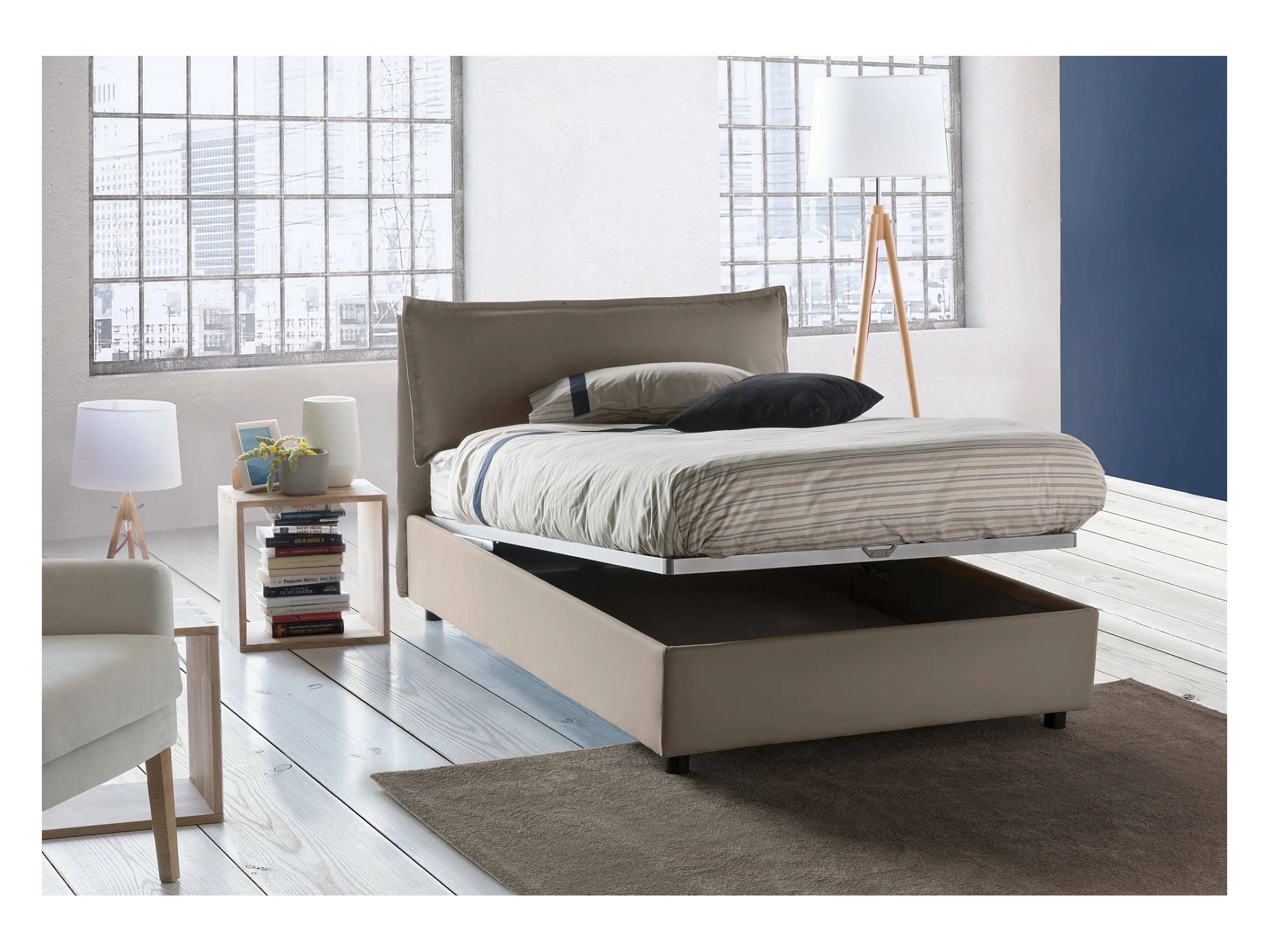 Quadratisches und halbes Bett Dbegi, Containerbett mit Stoffbespannung, 100% Made in Italy, Frontöffnung, passend für Matratze 120x200 cm, Turteltaube