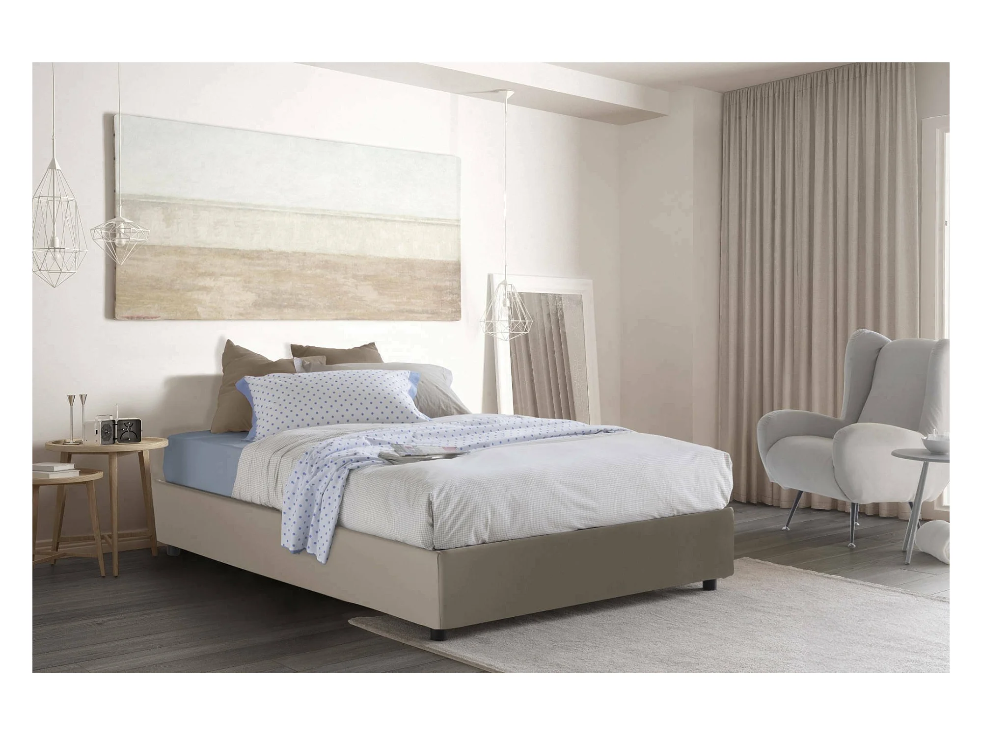 Quadratisches und halbes Bett Dguiebr, Containerbett mit Kunstlederbezug, 100% Made in Italy, Frontöffnung, passend für Matratze 120x200 cm, Turteltaube