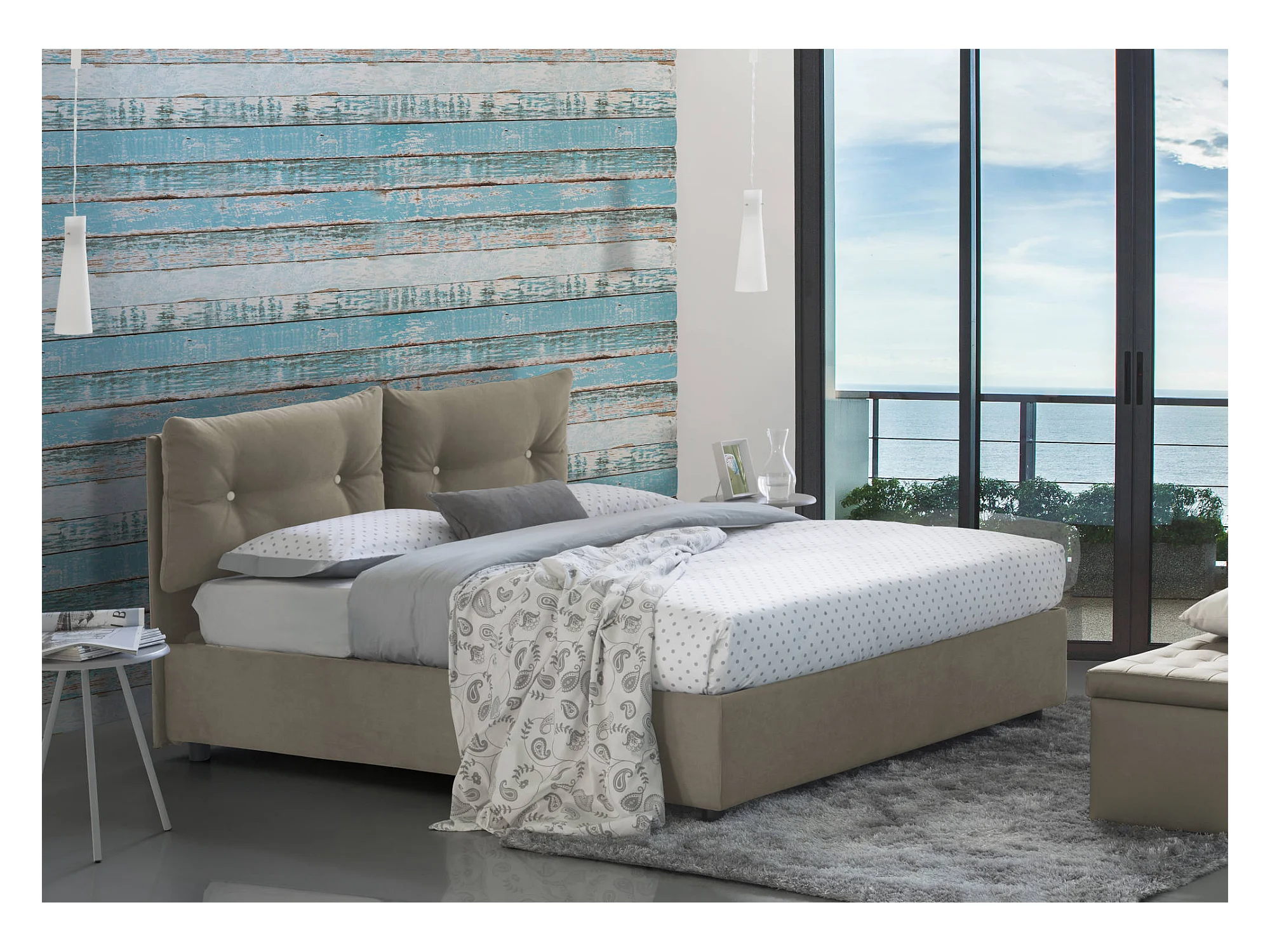 Quadratisches und halbes Bett Djankt, Containerbett mit Stoffbespannung, 100% Made in Italy, Frontöffnung, passend für Matratze Cm 120x190, Turteltaube