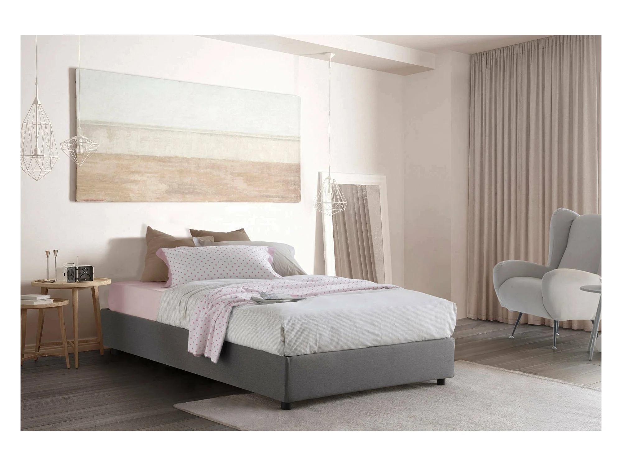 Quadratisches und halbes Bett Dmalizi, Containerbett mit Stoffbespannung, 100% Made in Italy, Frontöffnung, inklusive Matratze 120x200 cm, Grau
