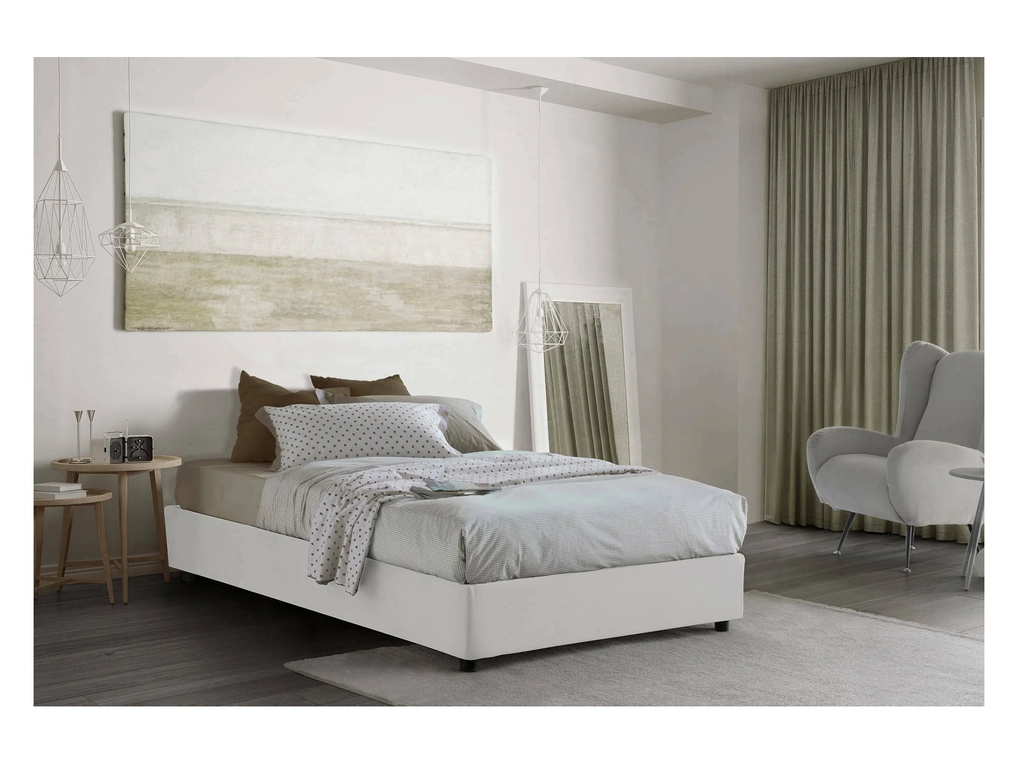 Quadratisches und halbes Bett Dmalizi, Containerbett mit Stoffbespannung, 100% Made in Italy, Frontöffnung, inklusive Matratze 120x200 cm, Weiß
