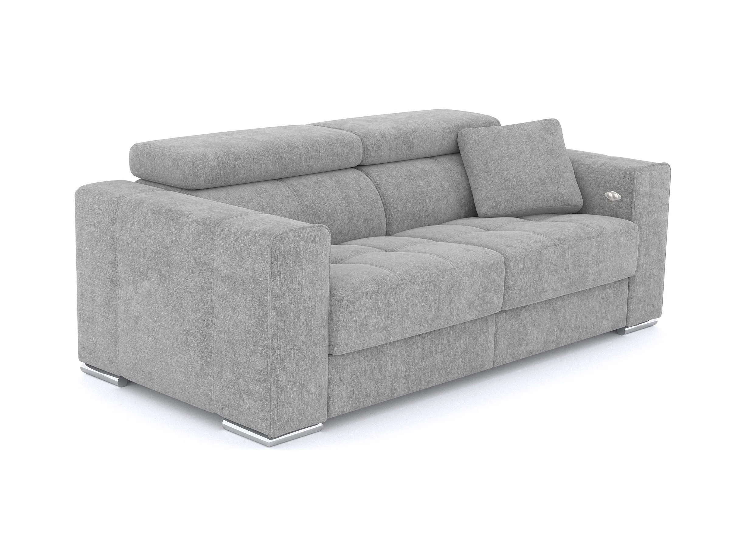 QUARTZ Sofa 3-Sitzer mit 1 Relaxfunktion und verstellbare Kopfstützen, hellgrau